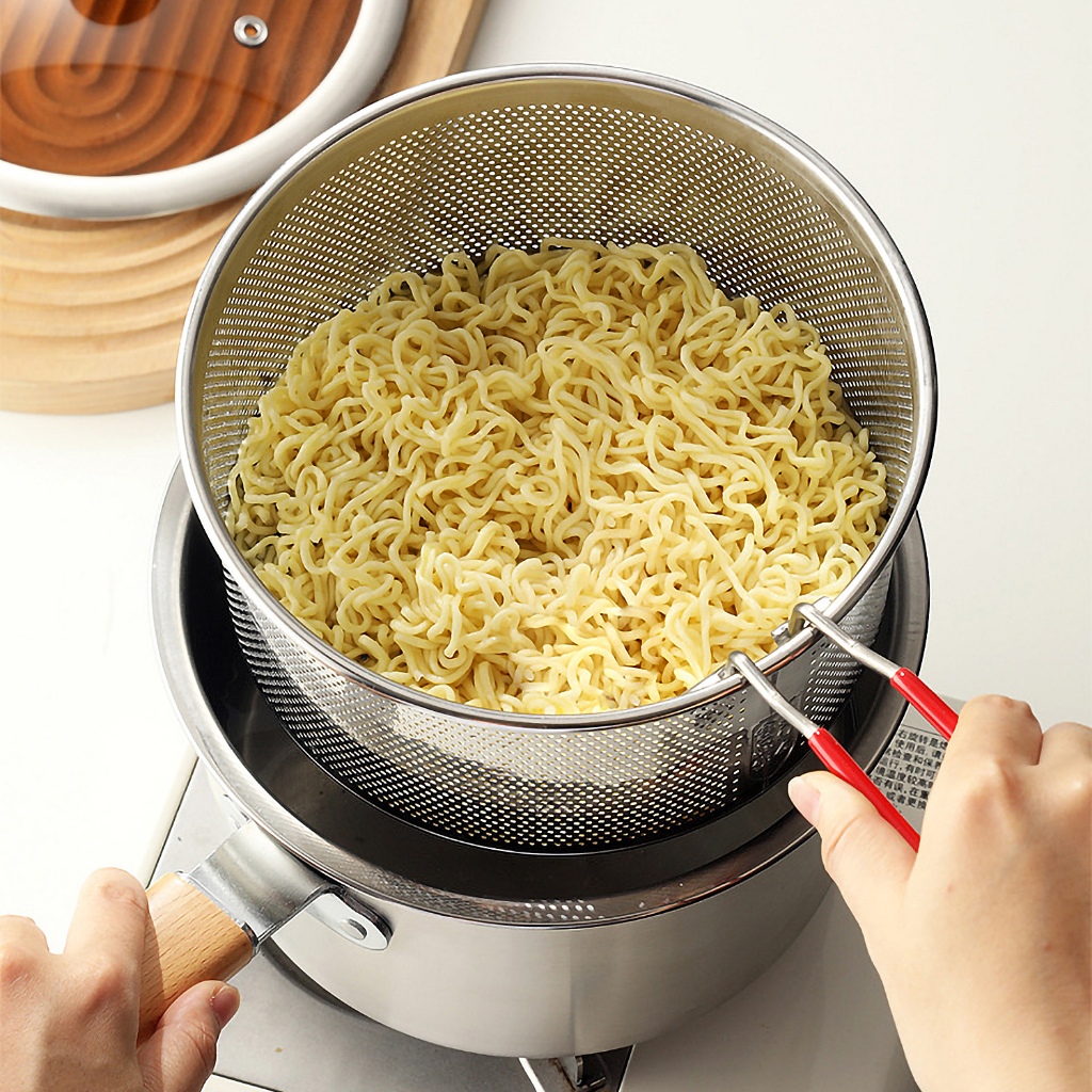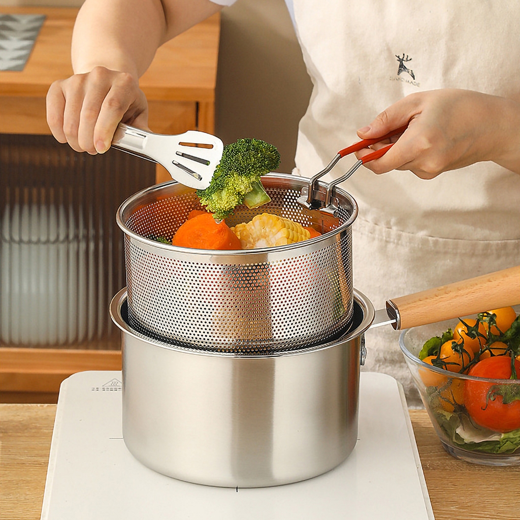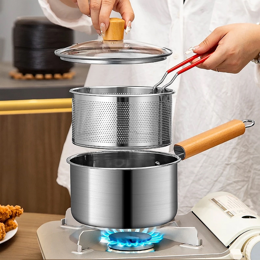 หม้อทอดสแตนเลส ทรงลึก พร้อมตะแกรงทอด ขนาด 12/20cm รุ่นหนาพิเศษ สแตนเลสเกรดอาหาร