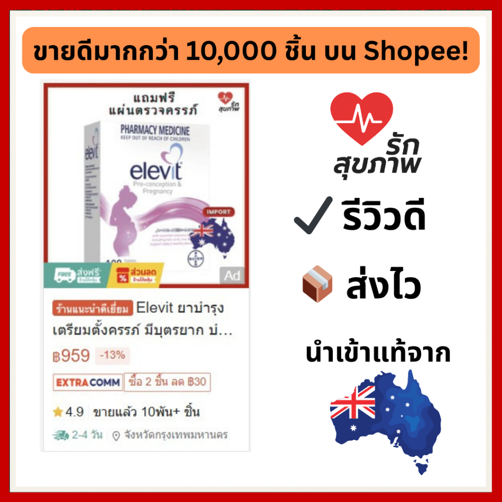 Elevit ยาบํารุงเตรียมตั้งครรภ์ มีบุตรยาก บํารุงมดลูก วิตามินก่อนตั้งครรภ์ วิตามินคนท้องจากออสเตรเลีย