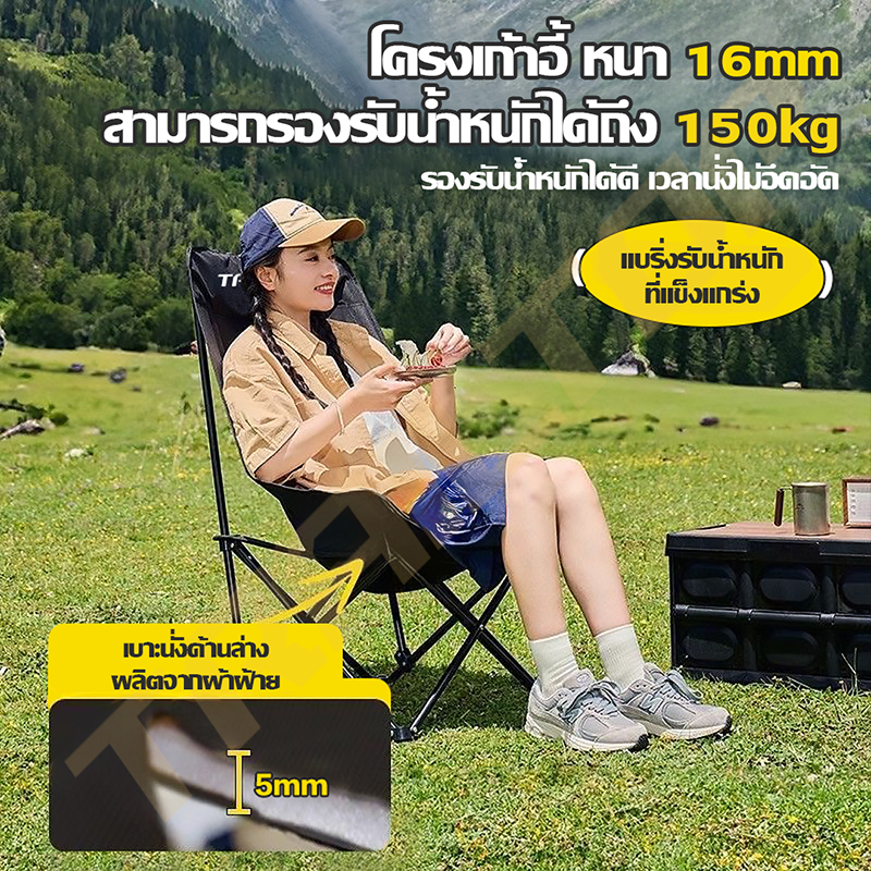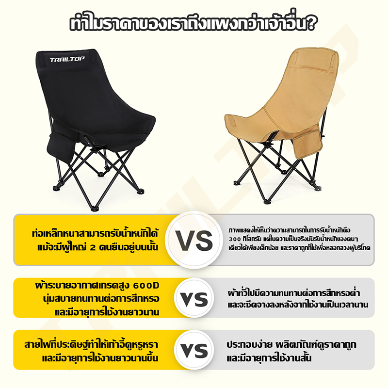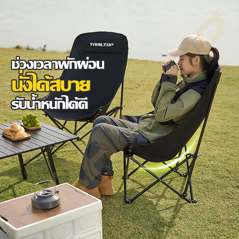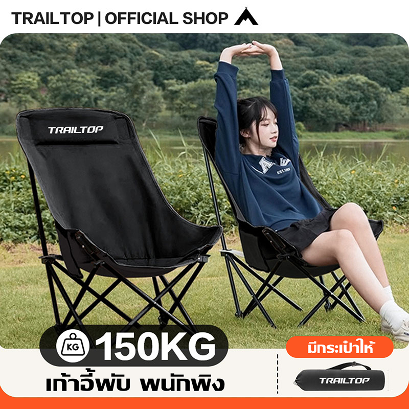 TRAILTOP เก้าอี้แคมป์ปิ้ง พนักพิงสูง เก้าอี้สนาม พับได้ แบบพกพา ปิคนิค แถมถุงเก็บ รับน้ำหนัก 300KG