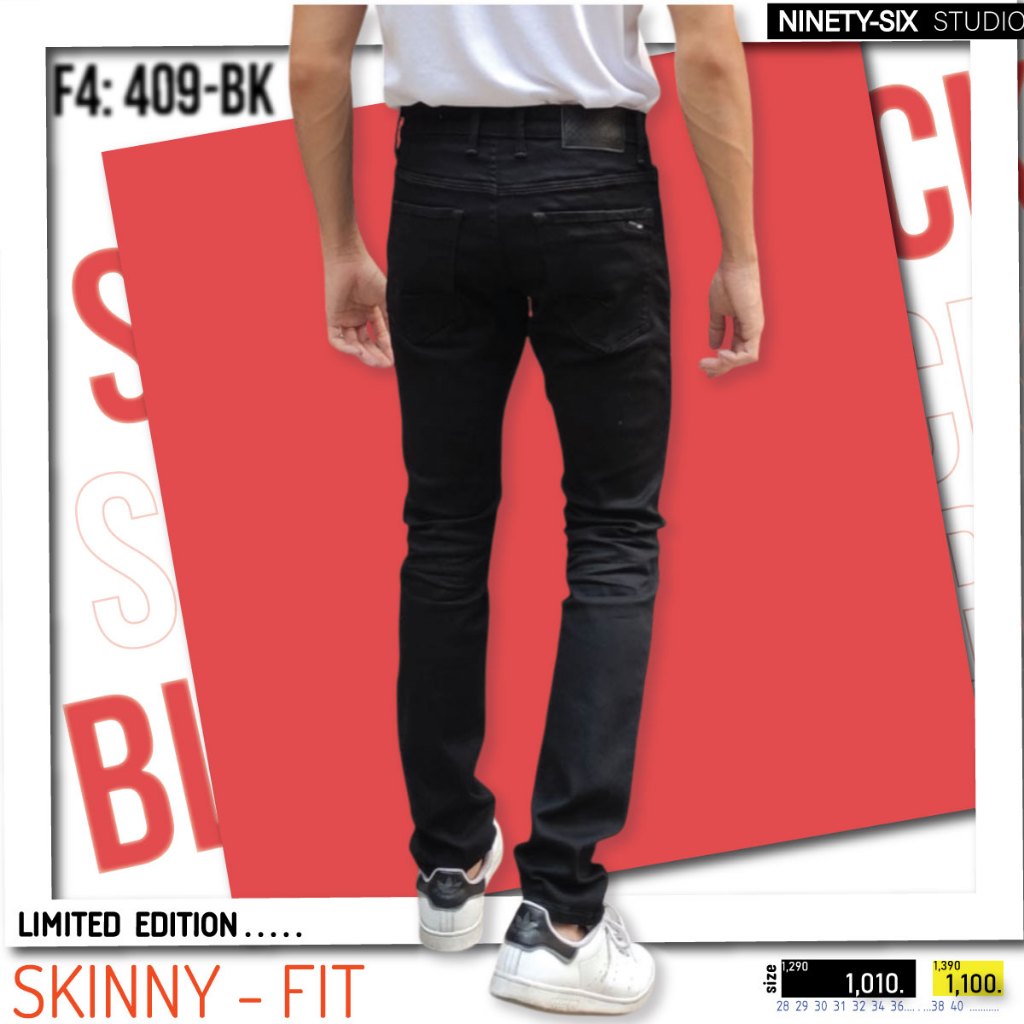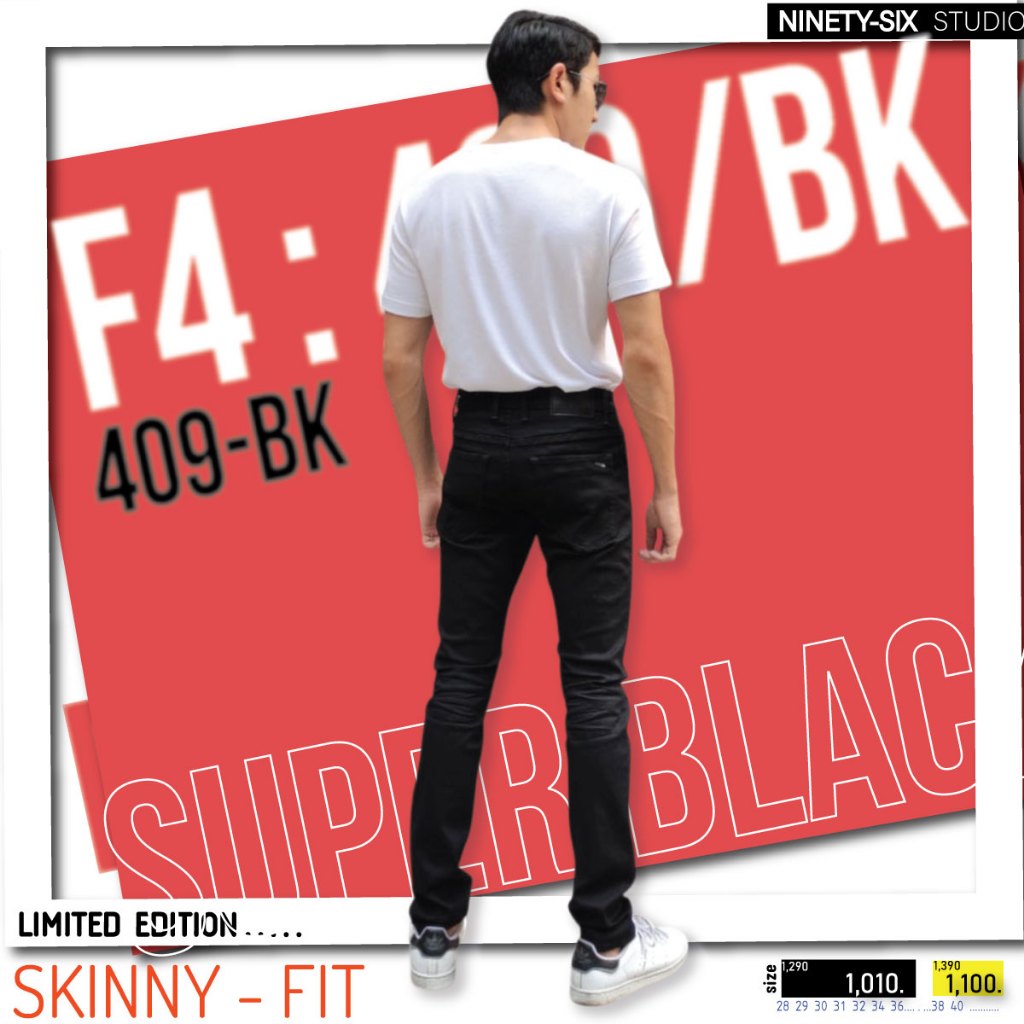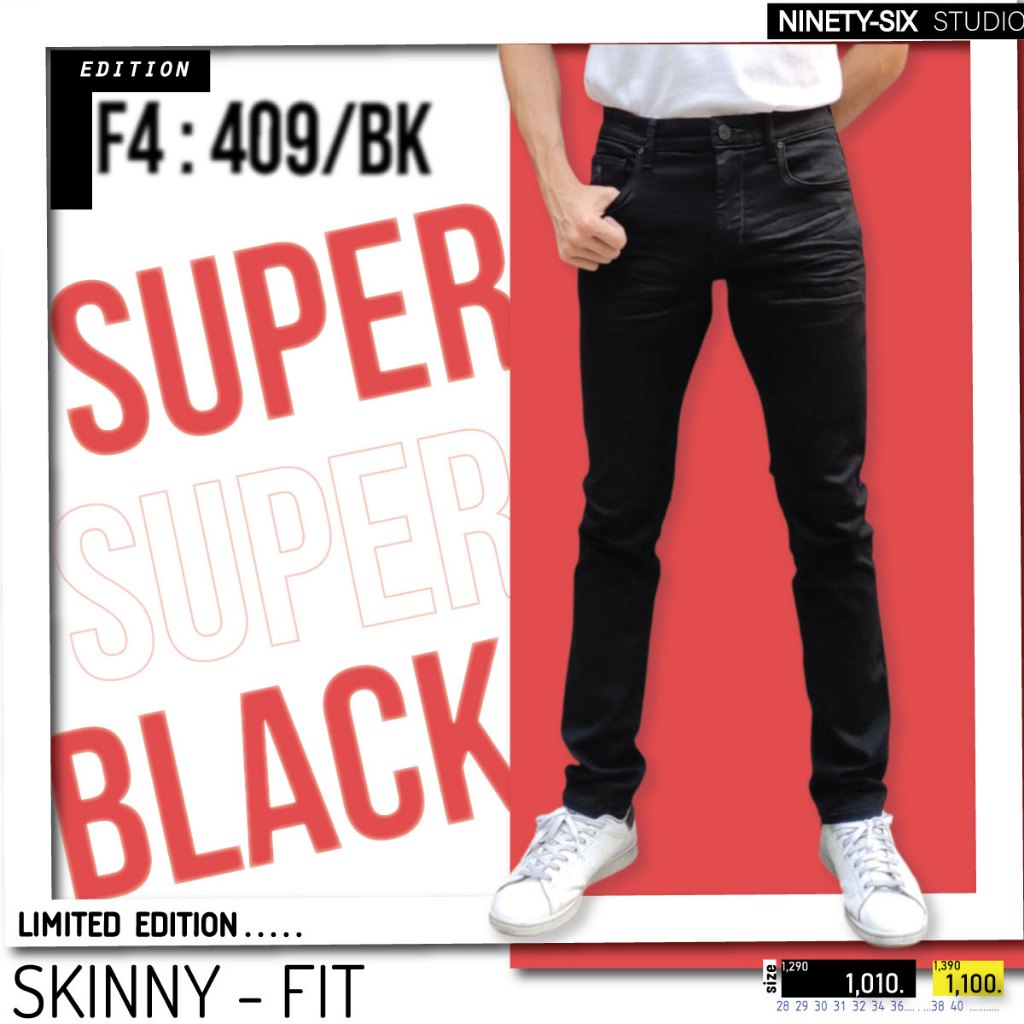F4-409/BK กางเกงยีนส์ยืด ทรงเดฟ สีดำซุปเปอร์แบล็ค