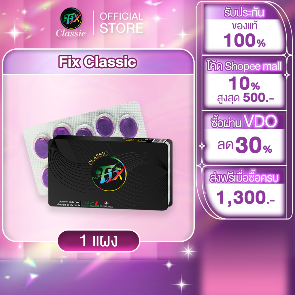 Fix classic sugar free ฟิกซ์ คลาสสิค ลูกอมสมุนไพรอาซาอิเบอร์รี่ เลิกสูบ ลูกอมเลิกบุหรี่ 1แผง/10เม็ด