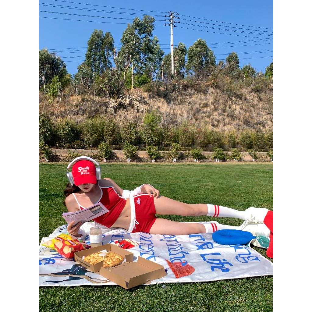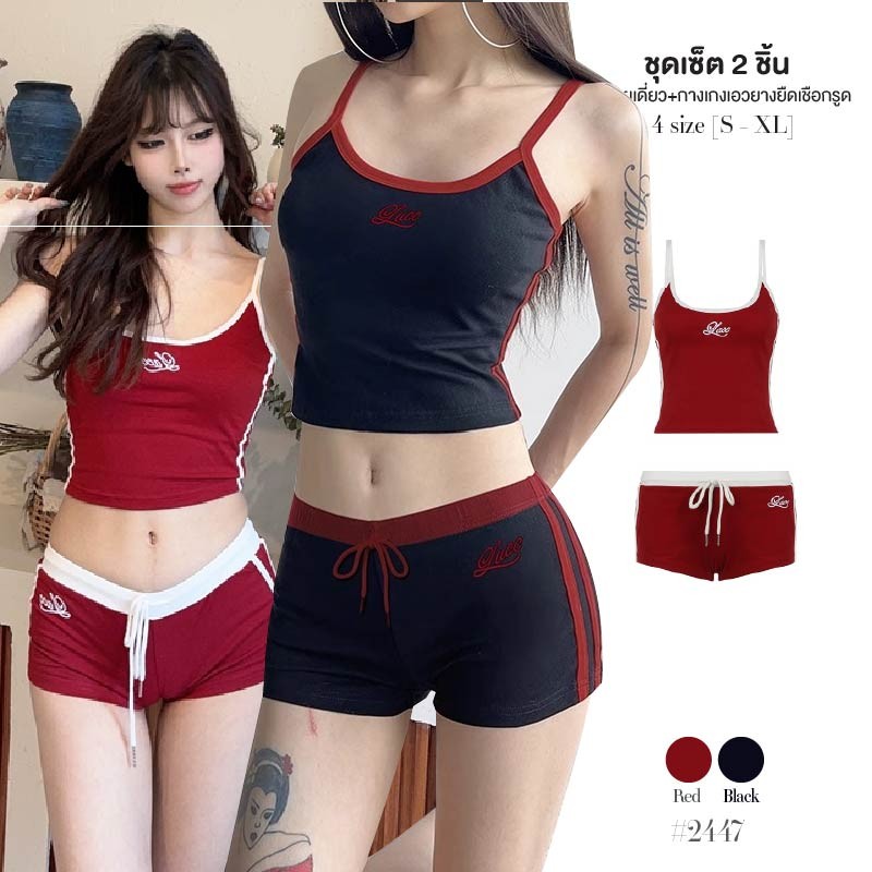 ชุดโยคะ เซ็ต2ชิ้น ผ้าโพลิเอสเตอร์ เสื้อสายเดี่ยว+กางเกงขาสั้นเอวยางยืด ชุดออกกำลังกายผู้หญิง #2447