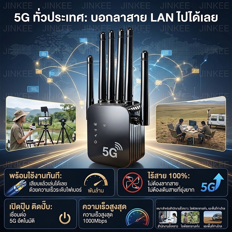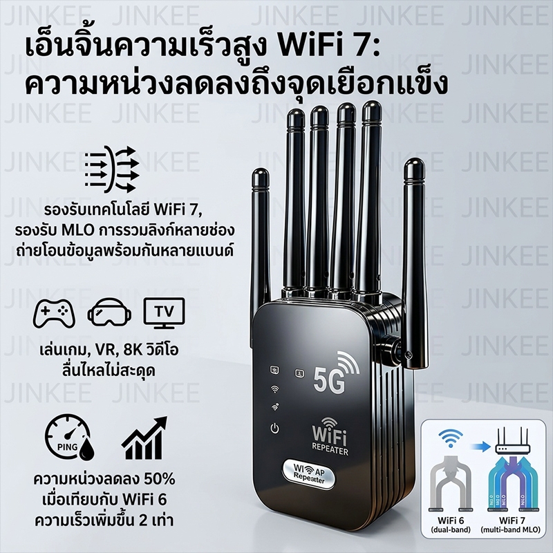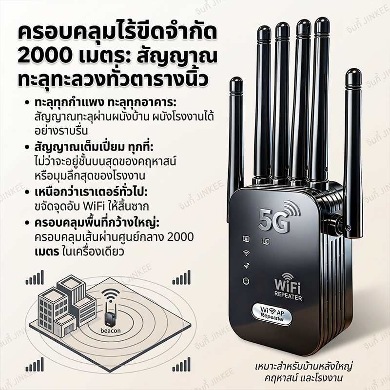 NEW2026 2.4/5G ตัวขยายสัญญาณ WiFi บ้าน ระยะไกล Dual Band WiFi รีพีตเตอร์ ตัวเสริมสัญญาณ WiFi ตัวขยายสัญญาณเราเตอร์