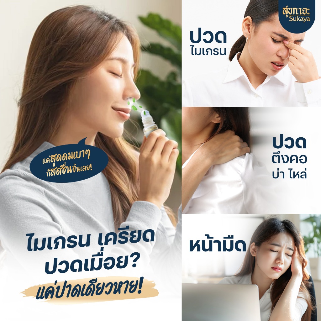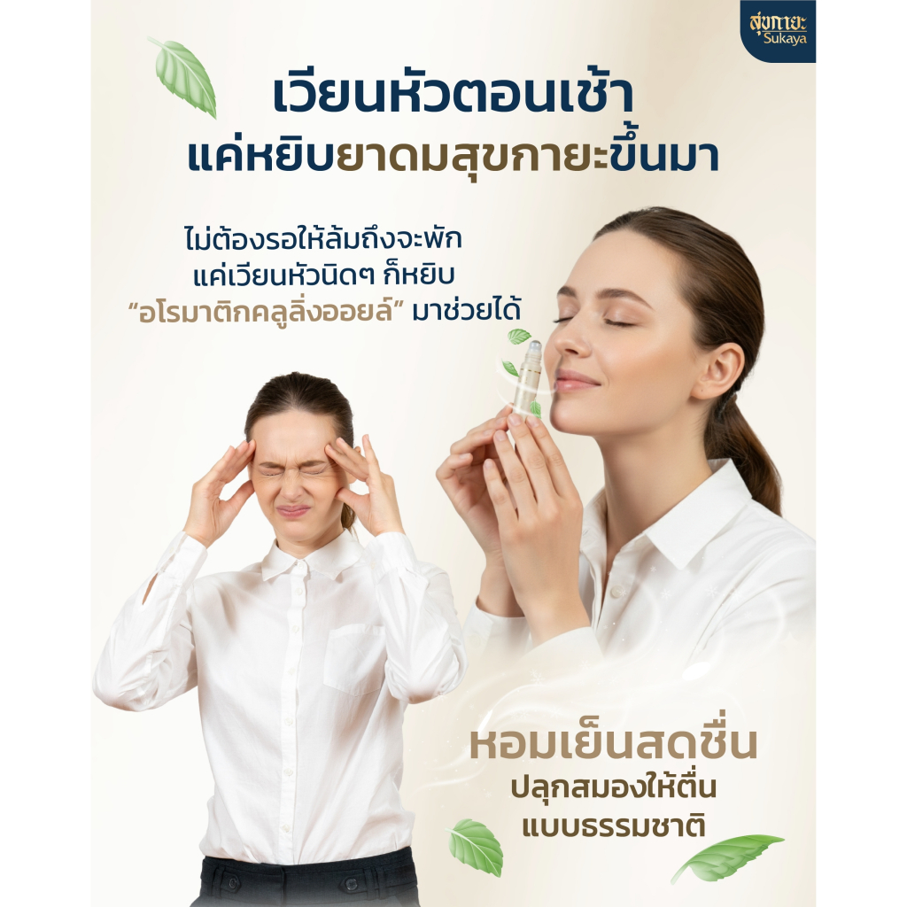 (เเท้) Sukaya Aromatic อโรมาติก คูลลิ่งออยล์ น้ำมันไมเกรน น้ำมันเย็น ปวดหัว น้ำมันหอม ลูกกลิ้งอโรม่า แก้วิงเวียน 5ml