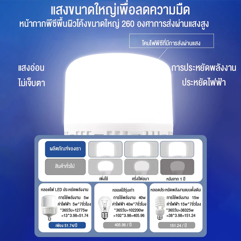 หลอดไฟ LED E27 แสงสีขาว หลอดไฟขั้วเกลียว 220V หลอดไฟประหยัด LED HighBulb หลอดไฟบ้าน หลอดไฟพร้อมสา