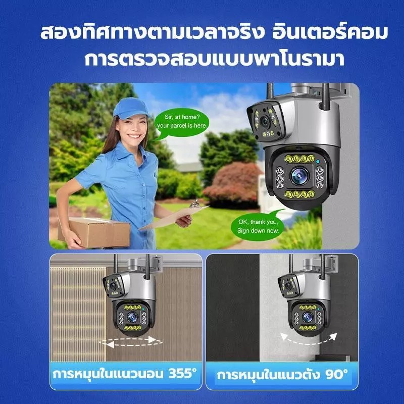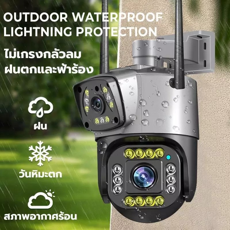 hikvision กล้องวงจรปิดกลางแจ้ง Motion Detection IP66 กันน้ำ Dual เลนส์ AI กล้องหมุนได้ 360 องศา WiFi