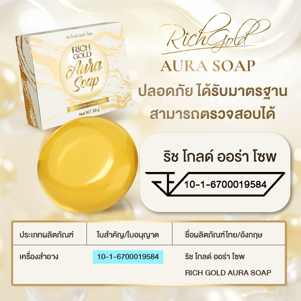 (ส่งฟรี) ริชโกลด์เซรั่ม 1 ขวด จับคู่ สบู่ริชโกลด์ ออร่า โซฟ 1 ก้อน - ส่งตรงจากโรงงาน