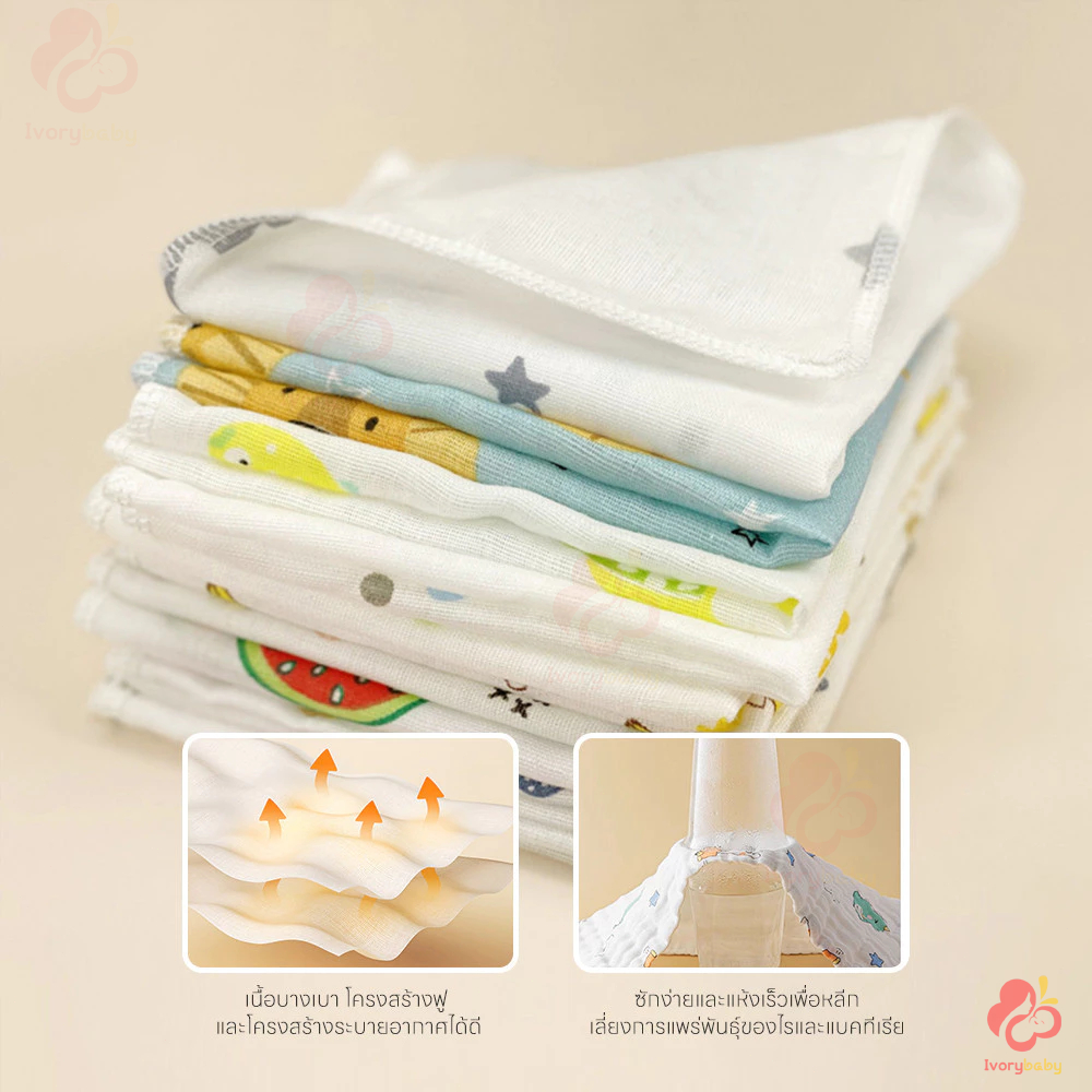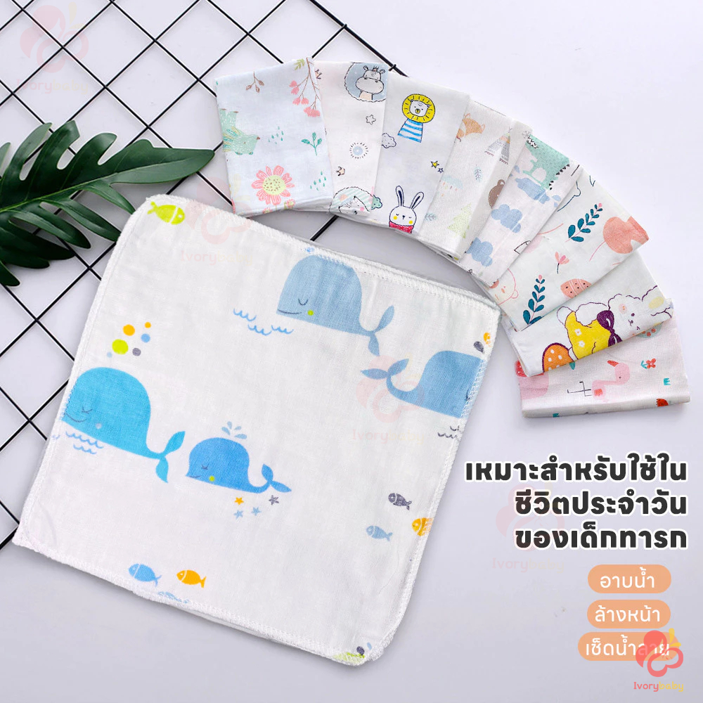 IVORYBABY ผ้าเช็ดหน้าเนื้อผ้าสาลูสำหรับเด็ก ผ้าสาลู เนื้อผ้านุ่ม สําหรับเช็ดหน้าสาลู ผ้าพันคอเด็ก เช็ดน้ำลาย อ่อนโยนต่อผ