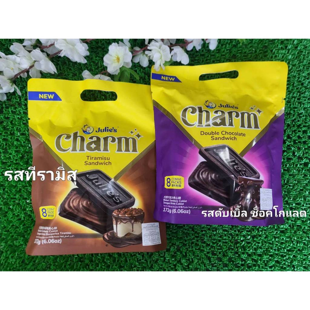 Julie's Charm ชาร์ม ขนมปังกรอบรสช็อคโกแลตสอดไส้ครีมเค้กทีรามิสุและดับเบิ้ลช็อคโกแลต ขนาด172กรัม