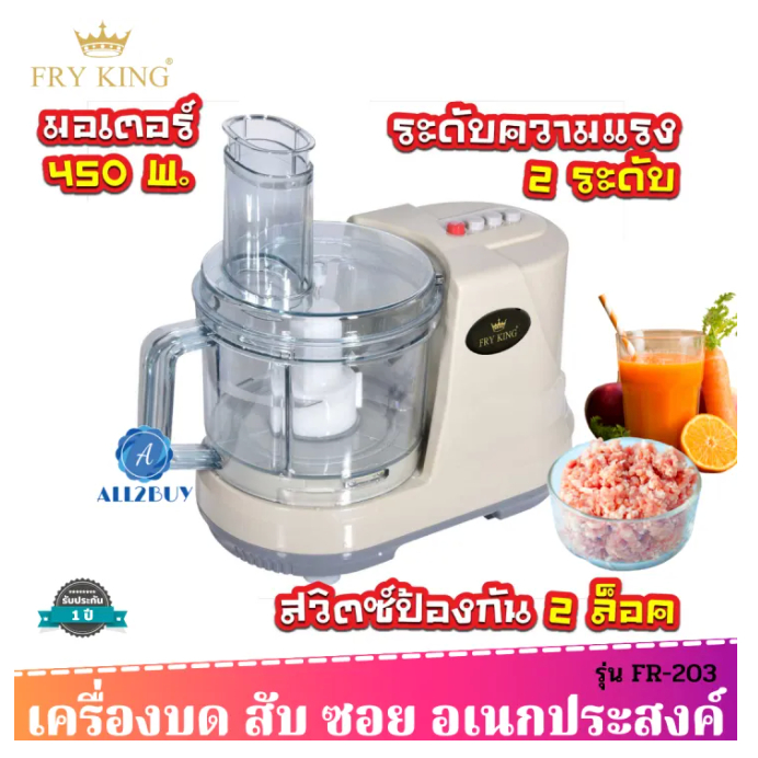 เครื่องเตรียมอาหาร Fry King FR-203 เครื่องบดอเนกประสงค์ 450W ปั่น บด สับ ซอย นวดแป้ง เครื่องปั่นอาหารไฟฟ้า