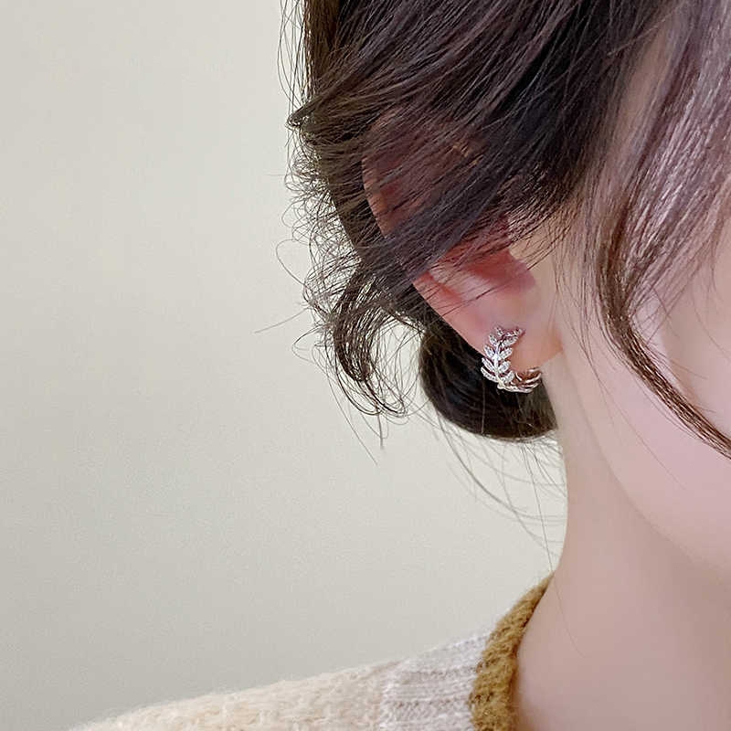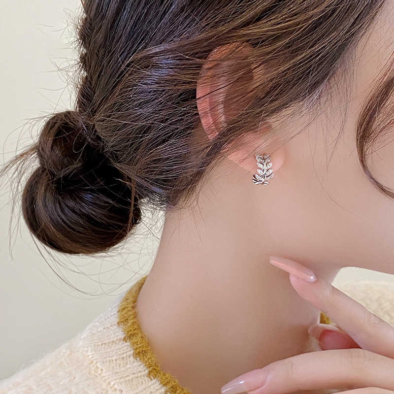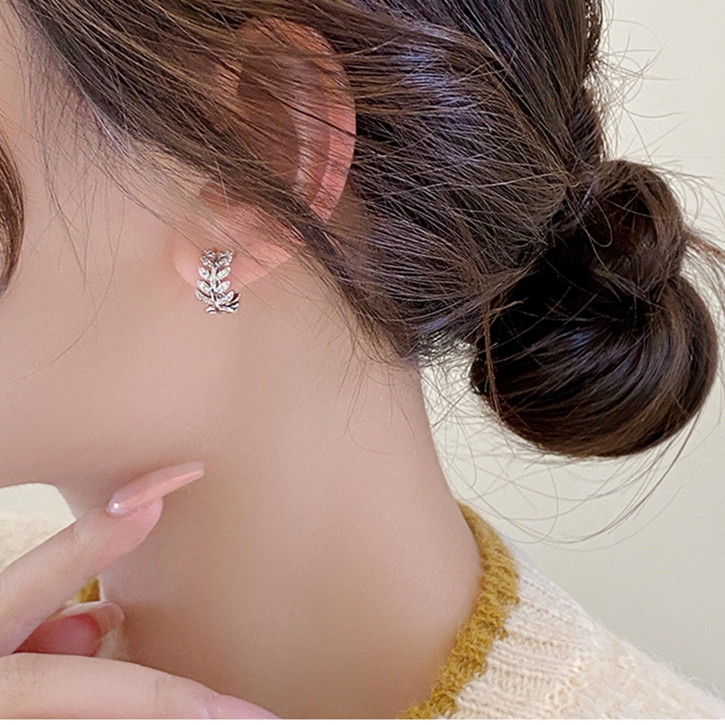 BWjewerly[ราคาต่อคู่] เทรนด์แฟชั่น ต่างหูใบไม้ ต่างหูเพชร ต่างหูผู้หญิง บรรจุภัณฑ์กล่องของขวัญ
