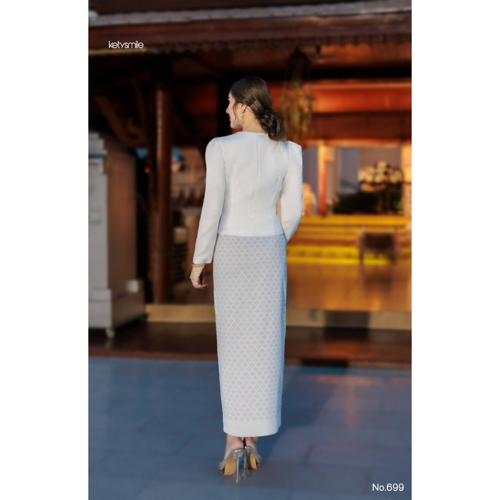 เซตคิมเบอรี่ เสื้อไหมญี่ปุ่นแขนยาว กระดุมหน้าใช้ได้จริง งานอัดกาว กระโปรงผ้าฝ้ายทอลาย อัดกาว ซิปซ่อนข้าง (S-2XL) KS699