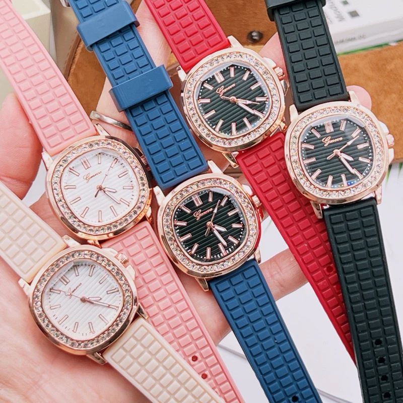 นาฬิกาข้อมือผู้หญิง Geneva นาฬิกาผู้หญิง เพชรล้อม กันน้ำ สายยาง หน้าปัด 35 มม หลายสี