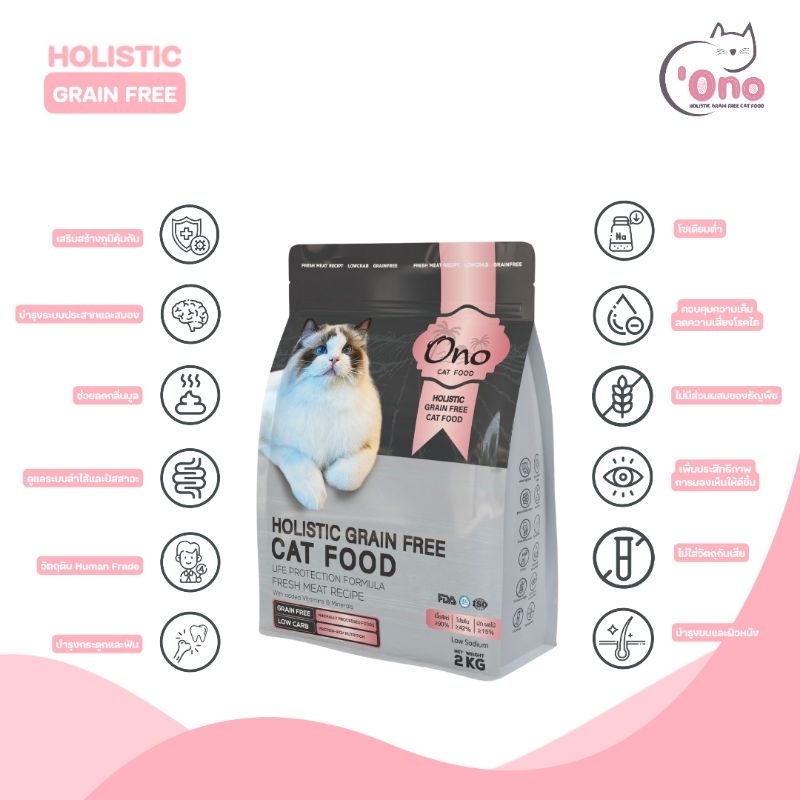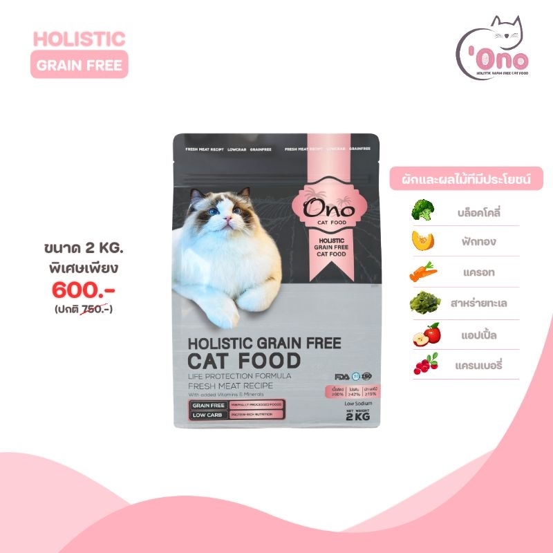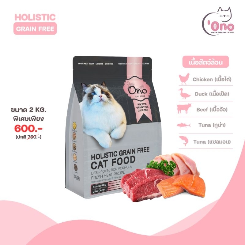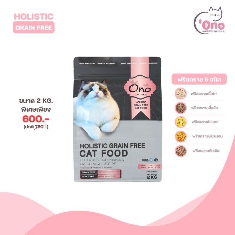 อาหารแมวโอโนะ Holistic Grain Free ขนาด 2 กิโลกรัม (อาหารขนาด 500 กรัม 4 ถุง)