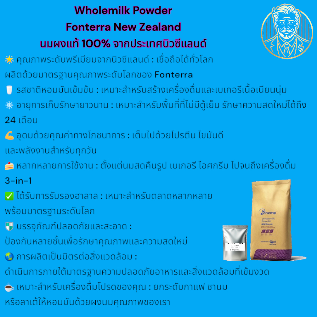 Fonterra Whole Milk Powder นมผงพรีเมียมจากนิวซีแลนด์ | หอมมัน ใช้ชงดื่ม-ทำขนม | ขนาด 25 กก.