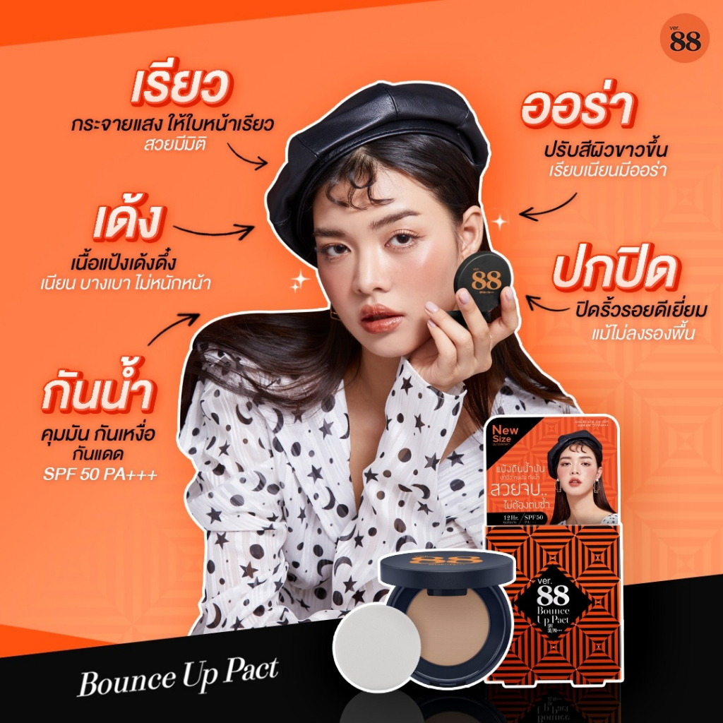 แป้งดินน้ำมัน + คุชชั่น Ver.88 Bounce Up Pact SPF 50/PA+++ ปกปิด คุมมัน 18 ชั่วโมง 12g