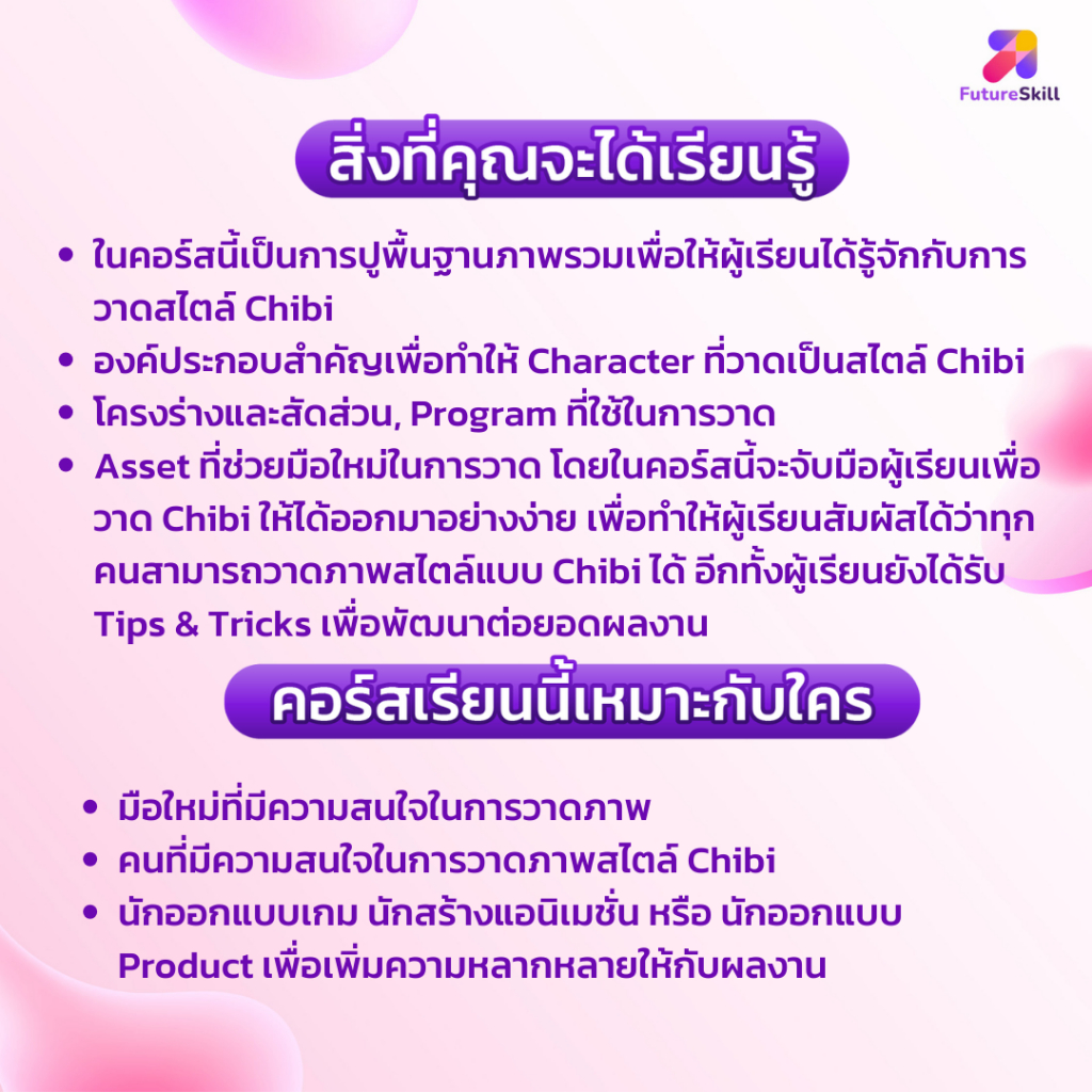 FutureSkill E-Book + คอร์สเรียนออนไลน์ | ออกแบบตัวละครสไตล์ Chibi ตั้งแต่เริ่มต้น Develop ให้เป็น Character ในสไตล์คุณ