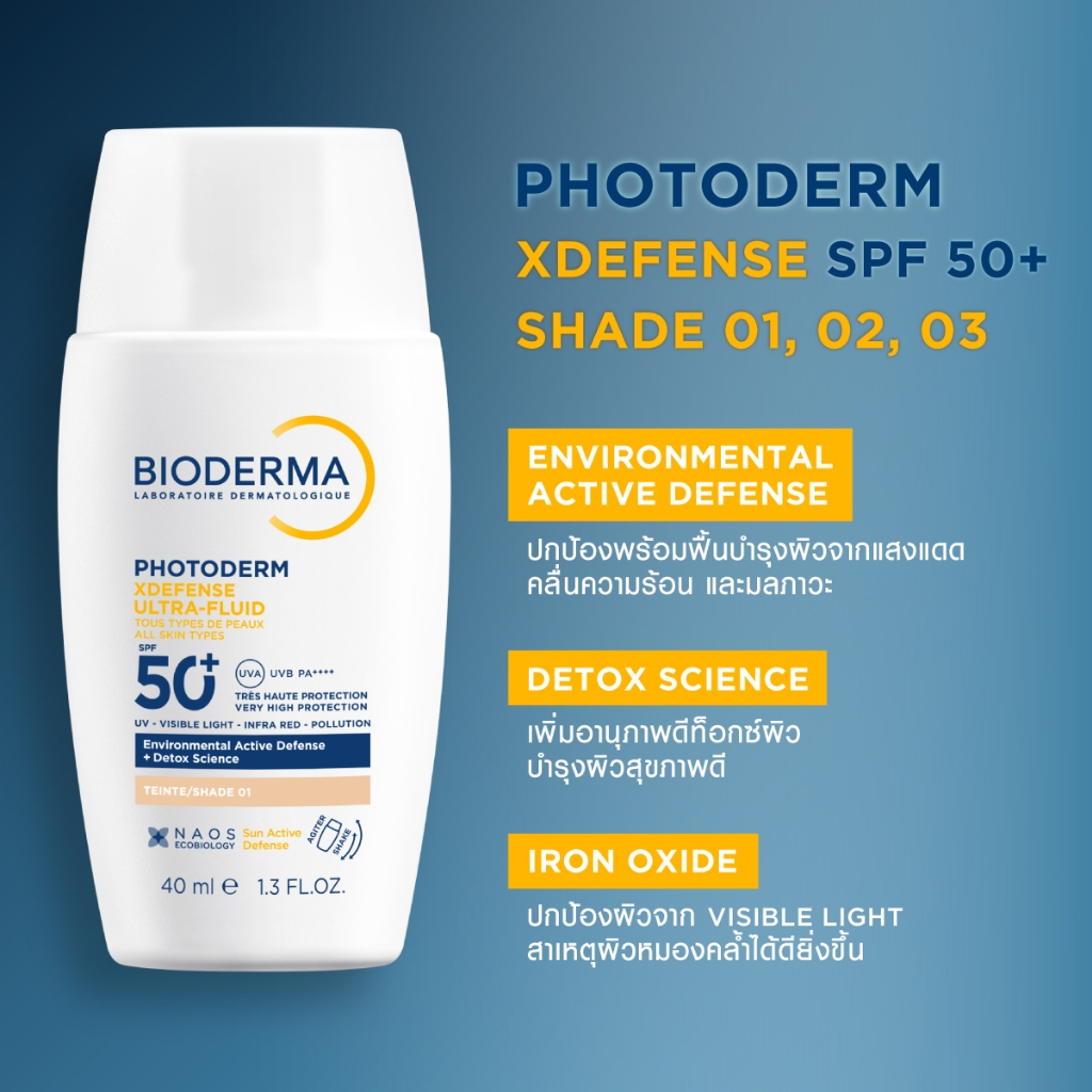 [New] Bioderma Photoderm XDefense SPF50+ PA++++ (สีเนื้อ) 40 ml. กันแดดเนื้อบางเบา ซึมไว ไม่มันวาว