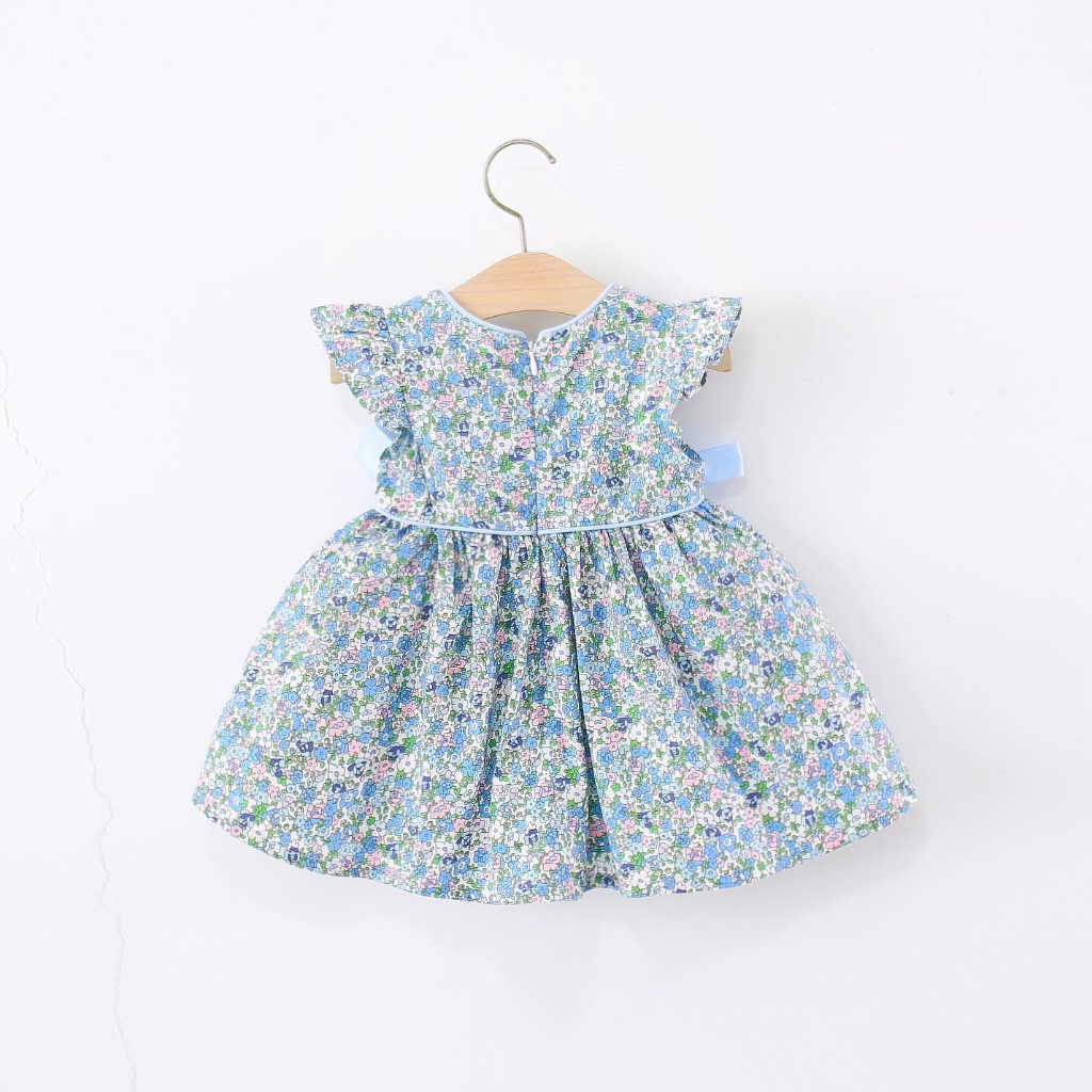 ฤดูร้อนใหม่ชุดเด็กผู้หญิง 0-4 ปีดอกไม้ขนาดเล็กรอบคอโบว์ใหญ่เด็กชุดเจ้าหญิง