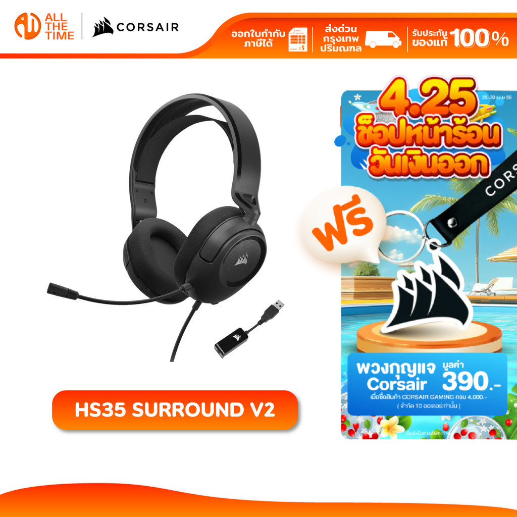 CORSAIR HS35 GAMING HEADSET SURROUND V2 MULTIPLATFORM หูฟังเกมมิ่ง : CA-9011386-AP