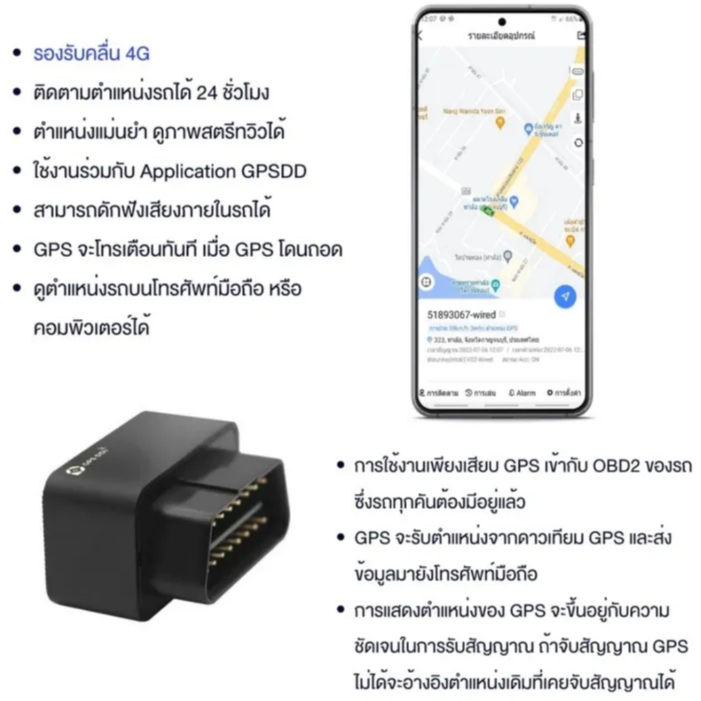 GPSDD GPS ติดตามรถ รุ่น GDD400 แบบเสียบ OBD2 port รองรับคลื่น 4G ติดตามรถแบบเรียลทาม ฟังเสียงภายในรถได้