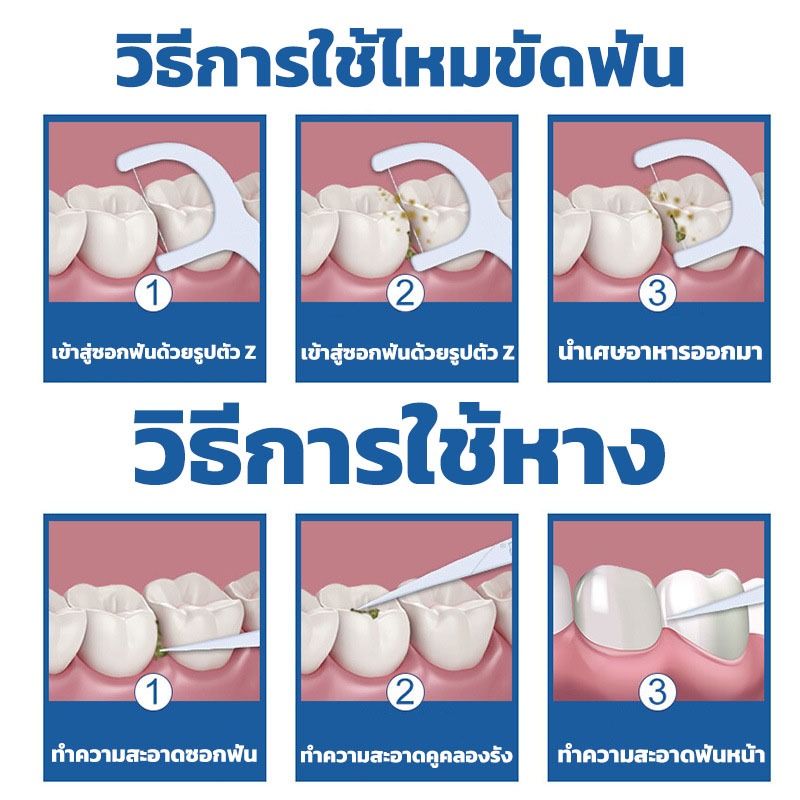 ไหมขัดฟัน2IN1ชนิดด้าม(50ชิ้น/กล่อง)ทางการแพทย์ ไม้จิ้มฟันพลาสติก ไหมขัดฟันแบบแท่ง แปรงขัดซอกฟัน แปรงสีฟัน