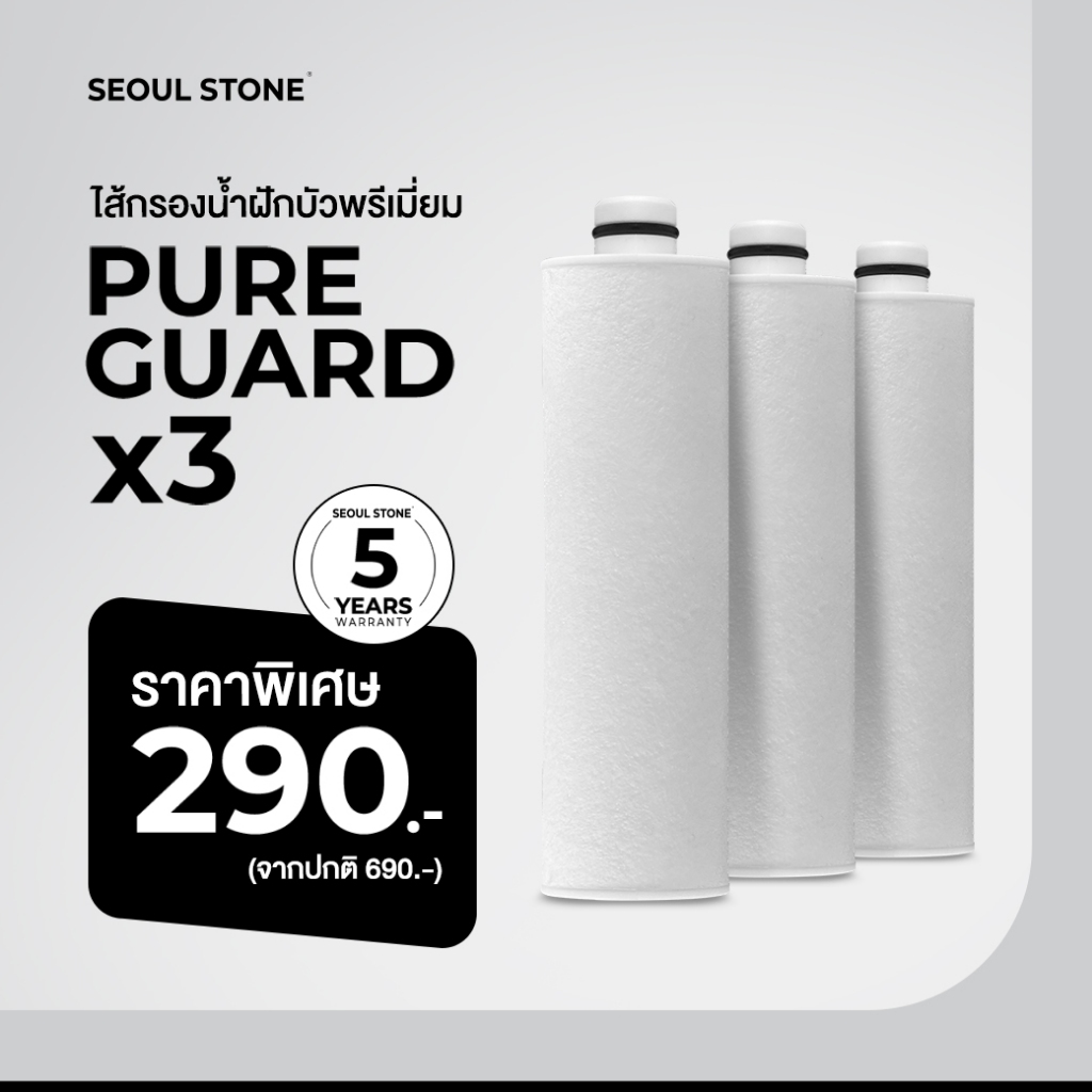 ที่กรองน้ำฝักบัวพรีเมียม Seoul Stone Pure Guard | เปลี่ยนไส้กรองได้ รับประกัน 5 ปี ราคาพิเศษเพียง 690.-
