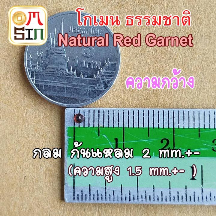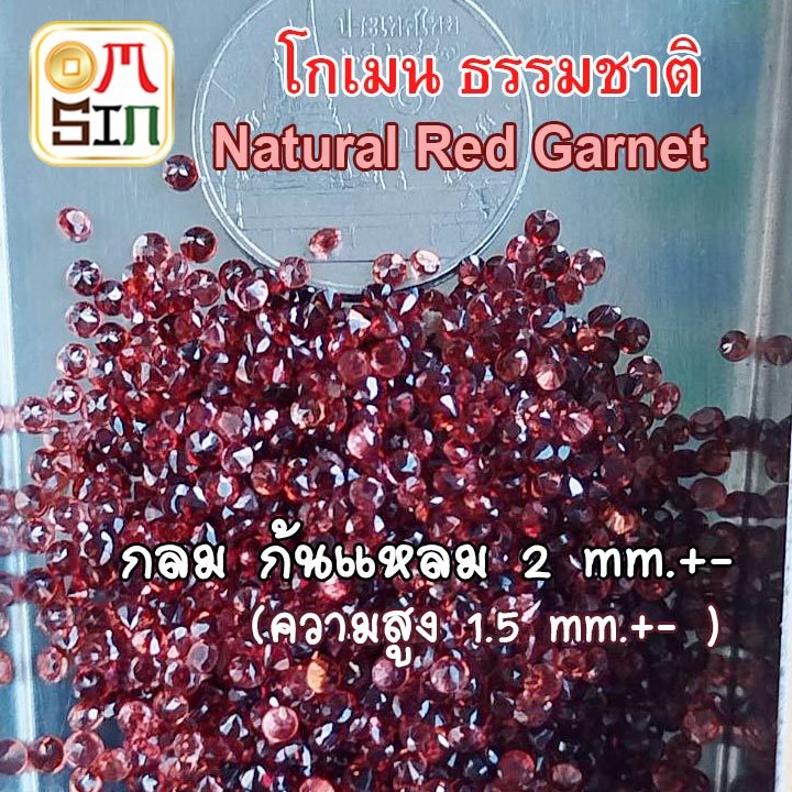💎🔴A036 2 มิล 1 เม็ด กลม โกเมน ก้นแหลม สีแดง Natural Garnet พลอยแท้ พลอยดิบ ไม่เผา ธรรมชาติแท้ 100%