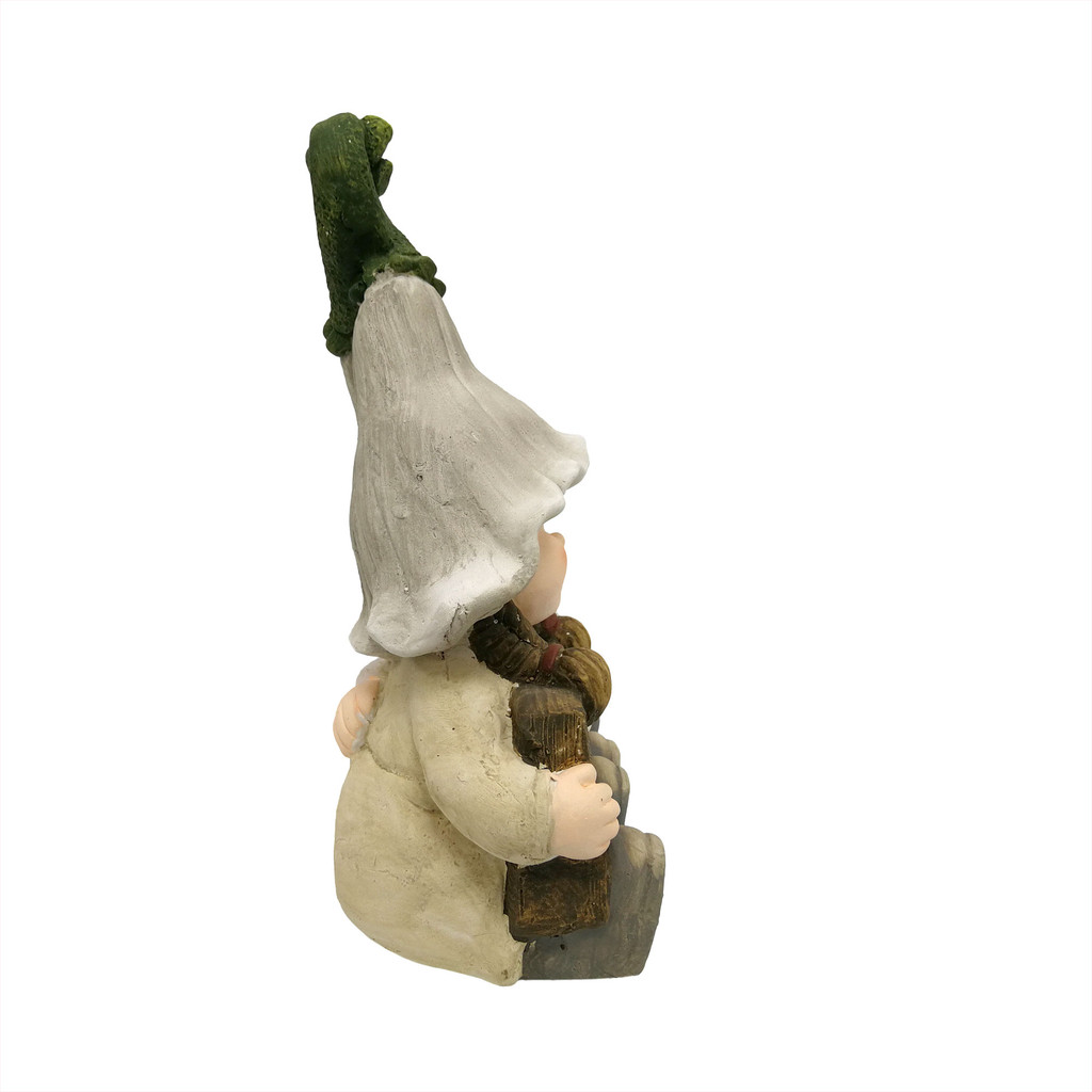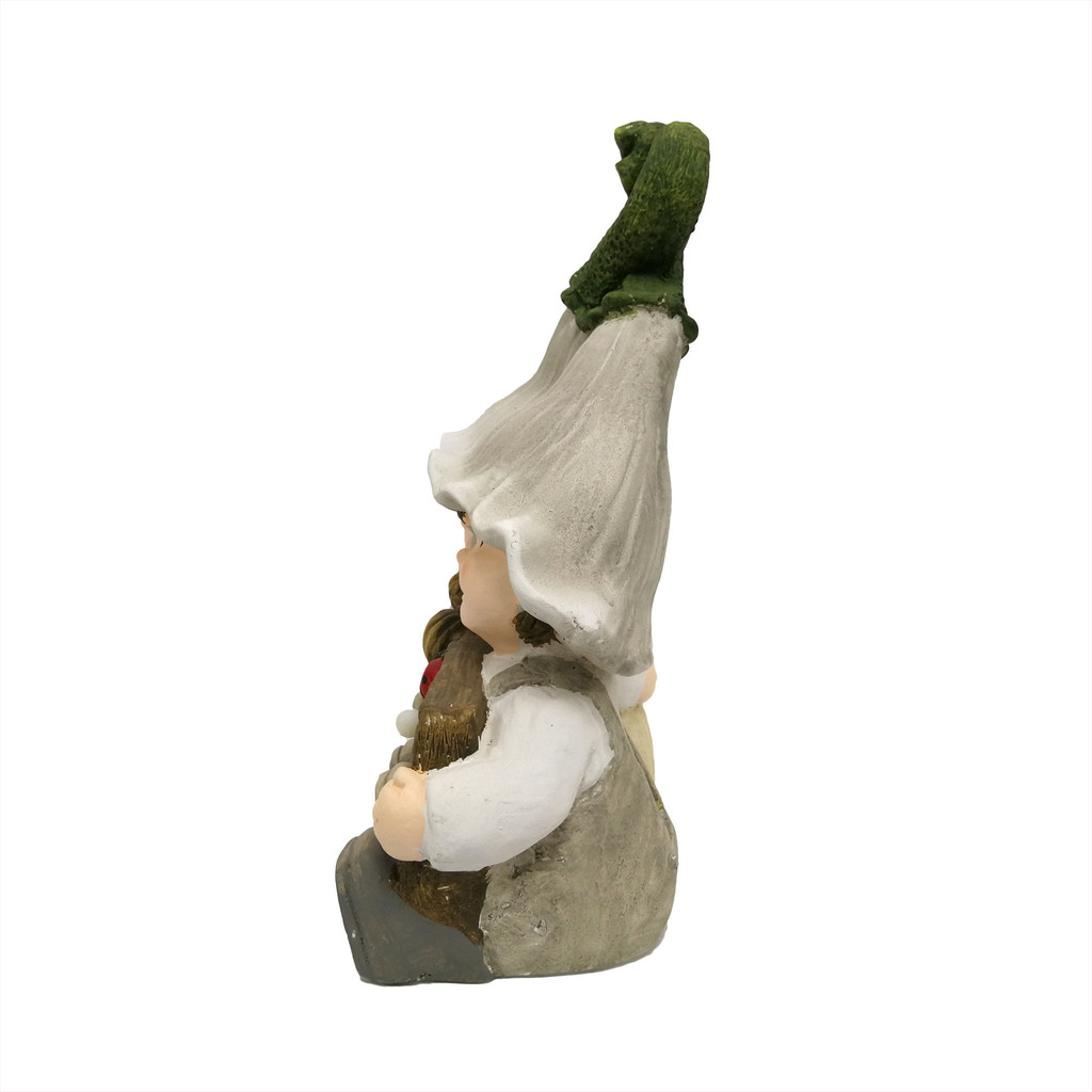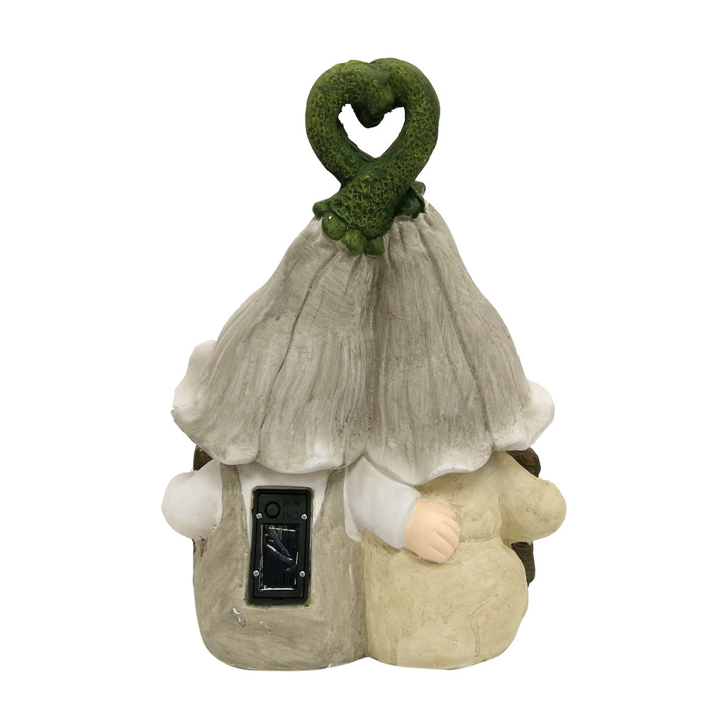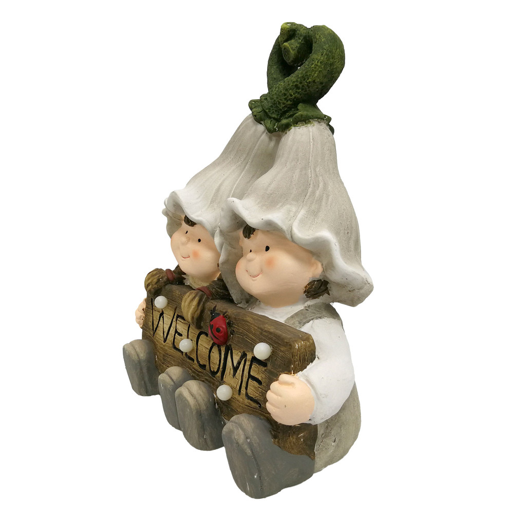FONTE รูปปั้นแต่งสวนไฟโซลาร์เซลล์ เด็กชายหญิงนั่งคู่ถือป้าย WELCOME รุ่น GB32-232075