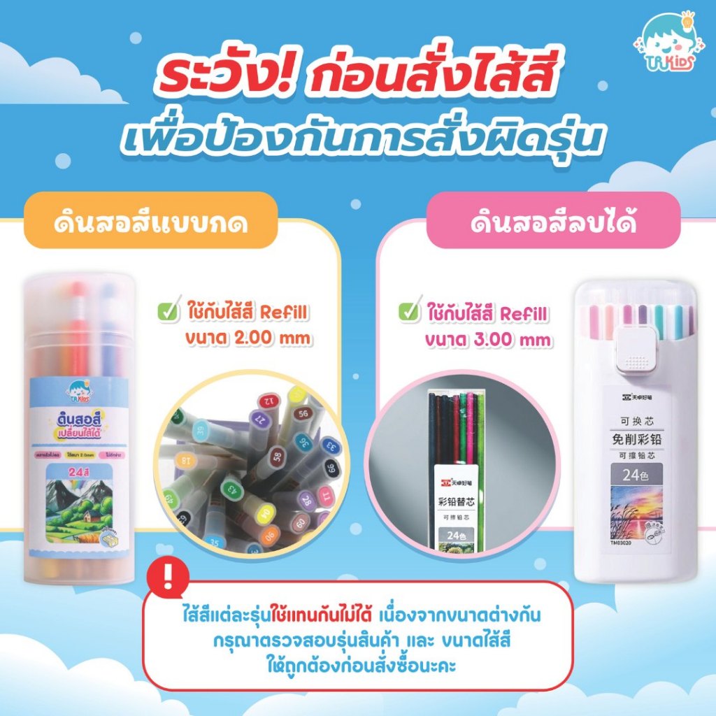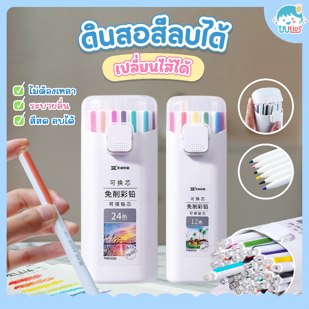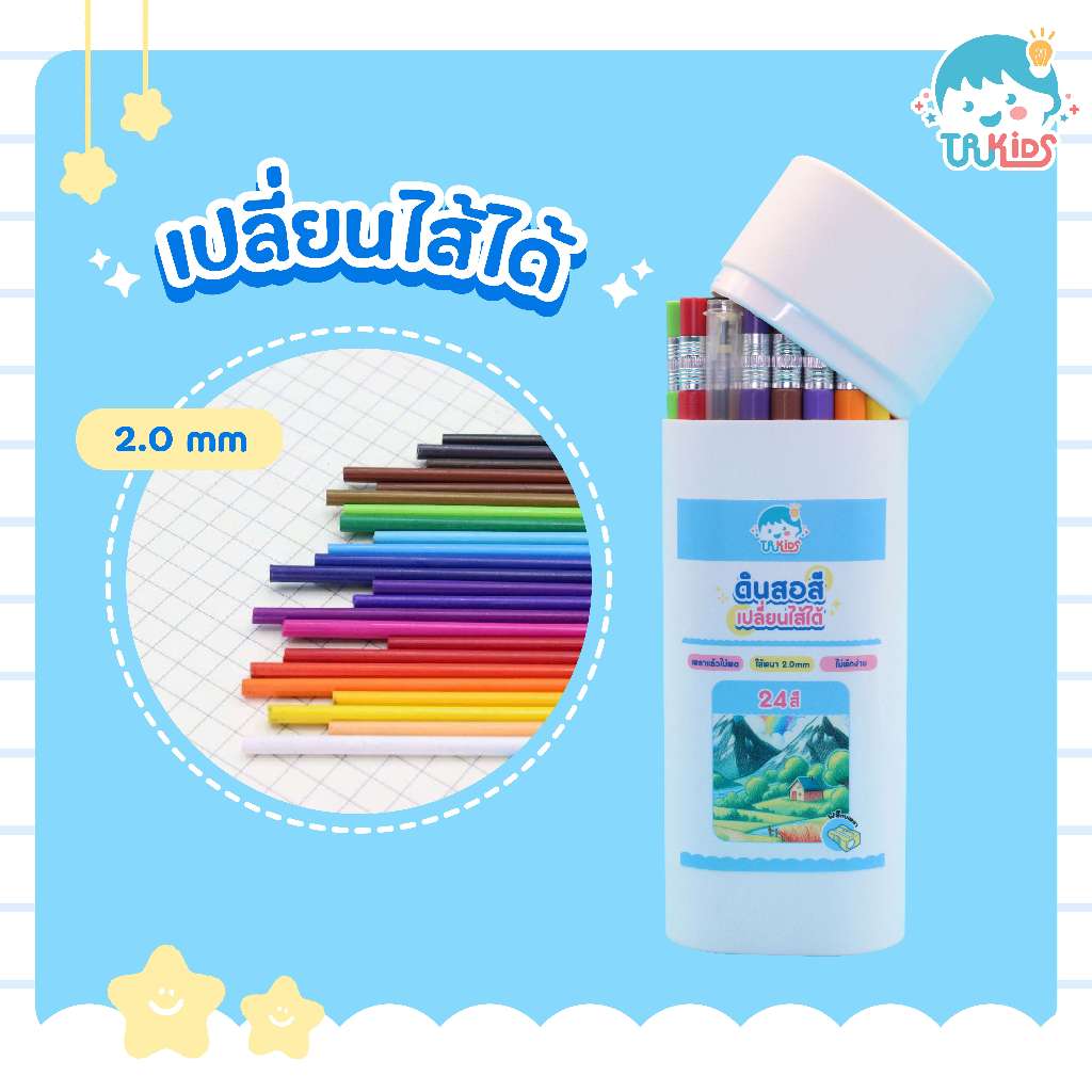 ดินสอสีแบบกด เปลี่ยนไส้ได้ 2.0mm และ 3.0 mm สีสวย ใช้งานง่าย ระบายลื่น