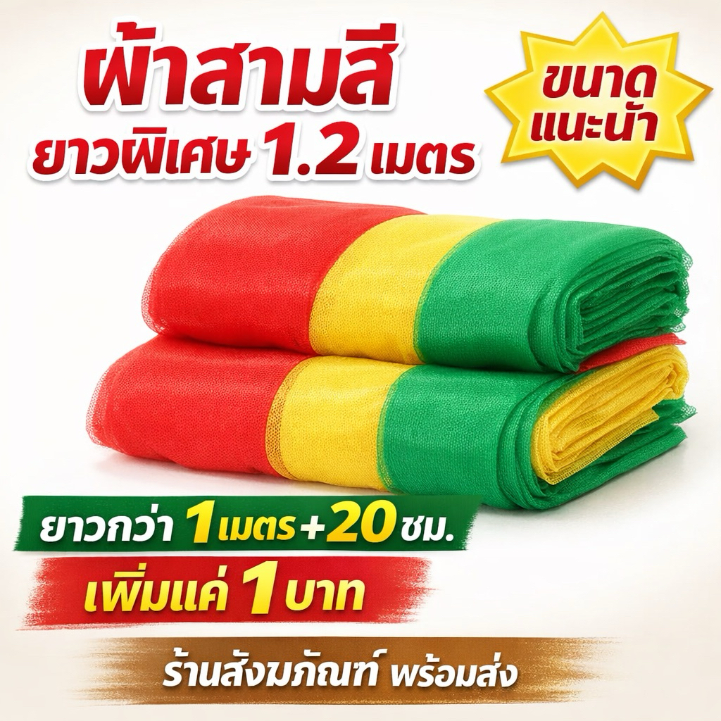 ผ้าสามสี 1 เมตร / 1.2 เมตร ยาวพิเศษ /2 เมตร ราคาประหยัด ใช้งานพิธีกร