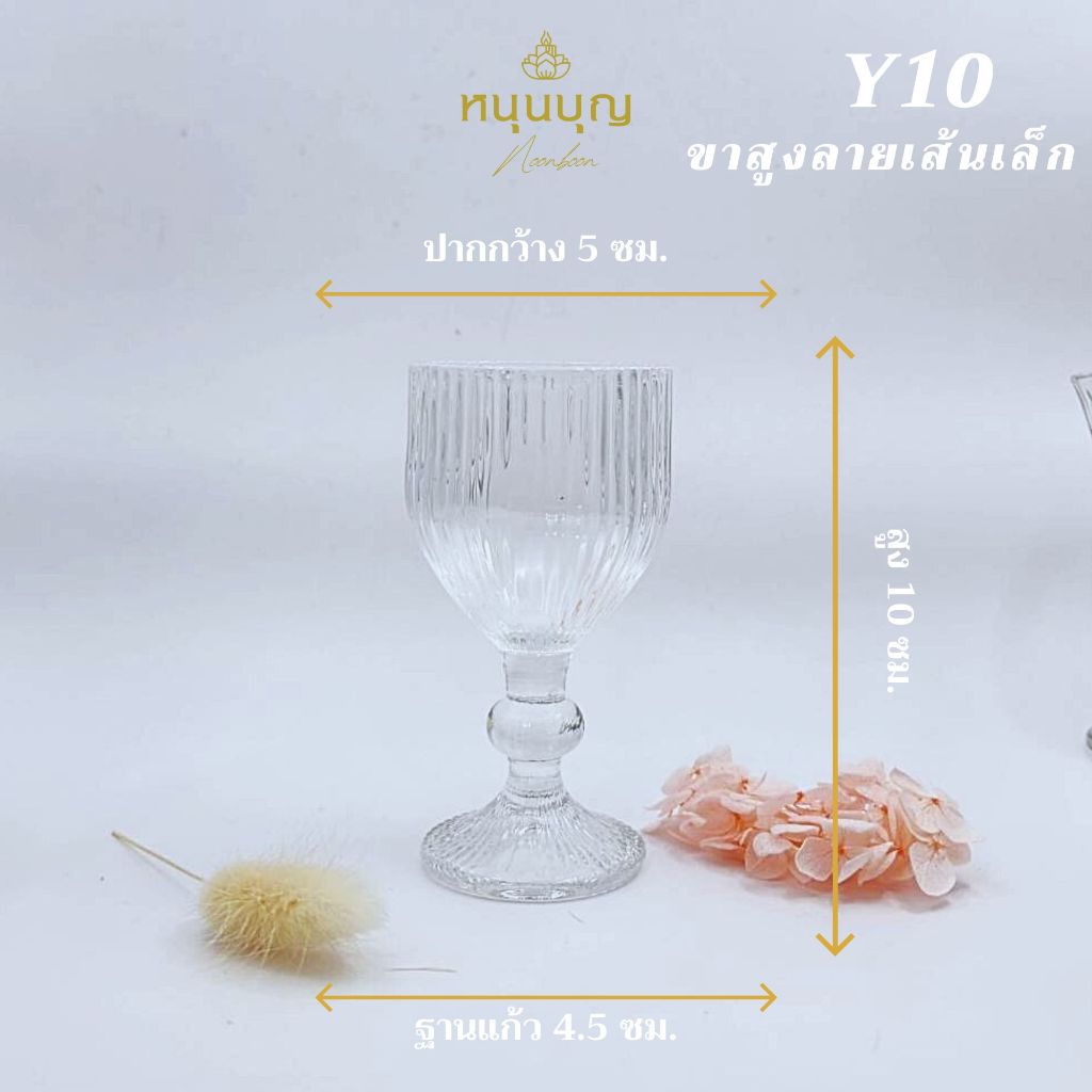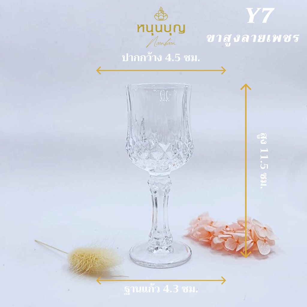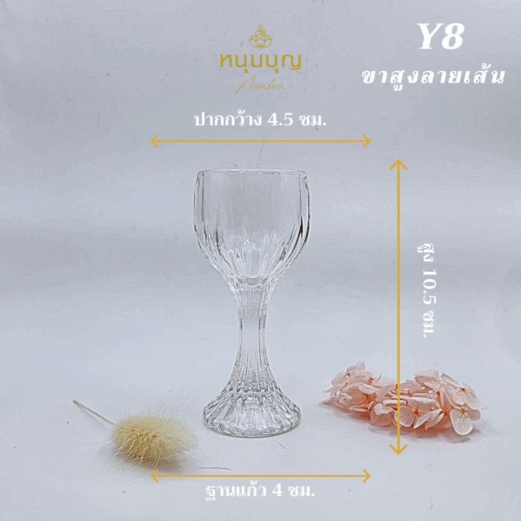 แก้วขาสูง เล็ก ลายสวยงาม หรูหรา สำหรับใส่น้ำถวายพระ ถวายเทพ ถวายเจ้า