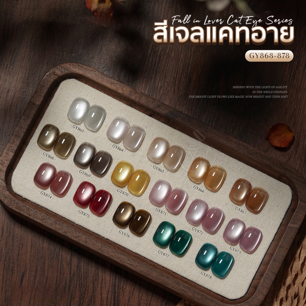 สีเจล (อบ) GAOY Gy 863-878 สีเจลแคทอาย เนื้อซาติน ดึงเงาง่าย ขึ้นประกายสวย Cat Eye สีเจลลูกแก้ว