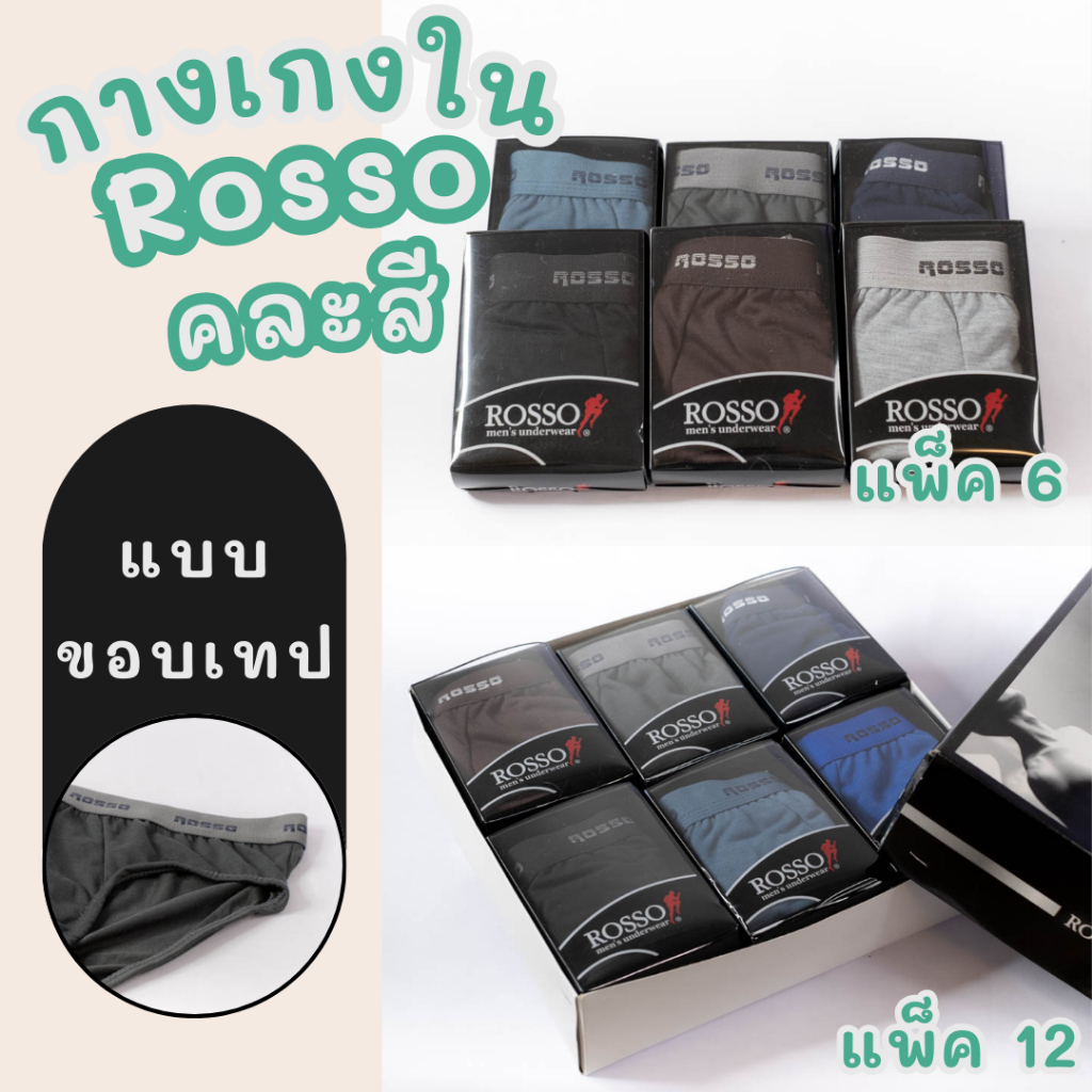 กางเกงในชาย Rosso แพ็ค 6/12 ตัว ขอบเทป/ขอบหุ้ม ใส่สบาย ผ้านุ่ม ระบายอากาศดี