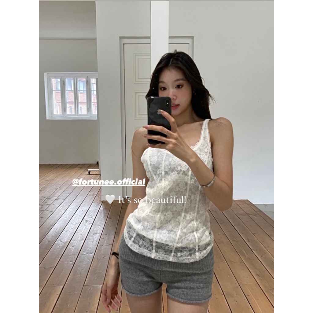 ❣Fortunee ❣ เสื้อสายเดี่ยวลูกไม้แบบประณีต ดีไซน์ไม่ซ้ำใคร ใส่ง่ายแมตช์ได้กับทุกลุค ช่วยพรางหุ่น ใส่เป็นชั้นใน ใส่เดี่ยว