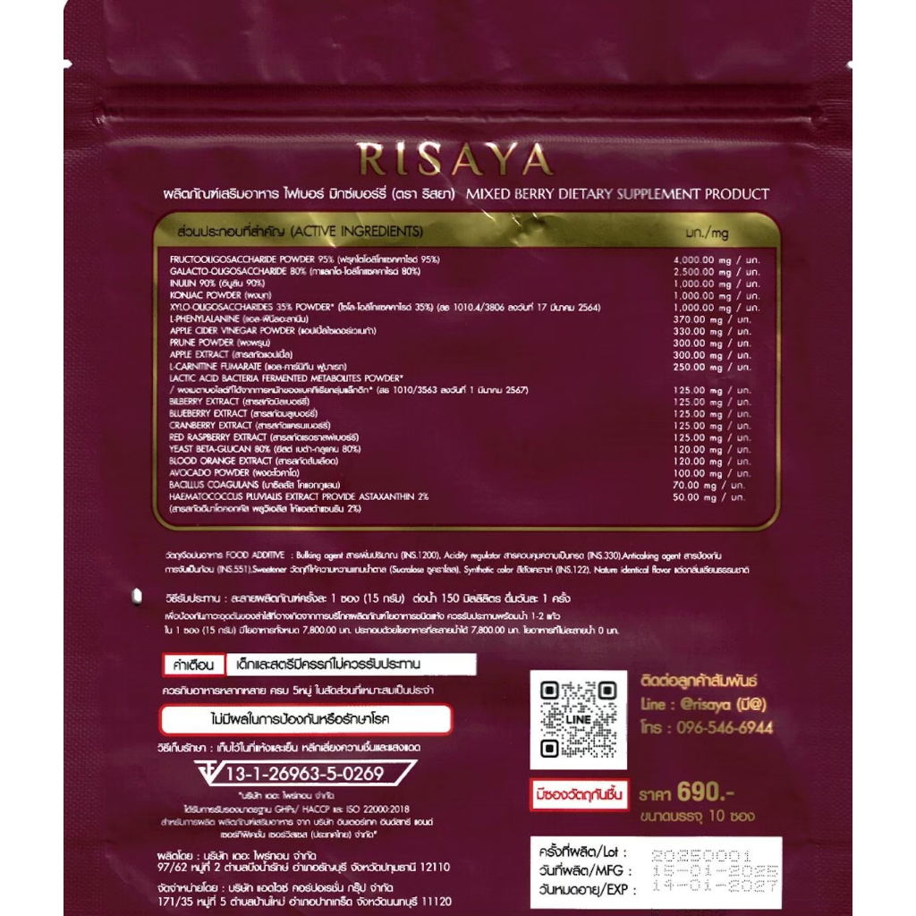 Risaya Fiber Mix Berry ริสยา ไฟเบอร์ มิกซ์ เบอร์รี่ 1 ห่อมี 10 ซอง