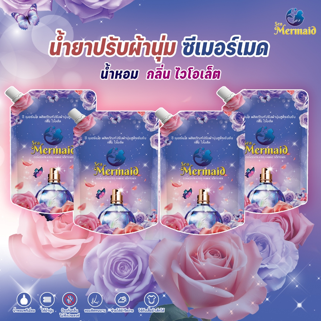 Sea Mermaid น้ำยาปรับผ้านุ่มสูตรเข้มข้น ซีเมอร์เมด 4800 มล. X4ถุง กลิ่น Violet กลิ่นหอมพรีเมี่ยม