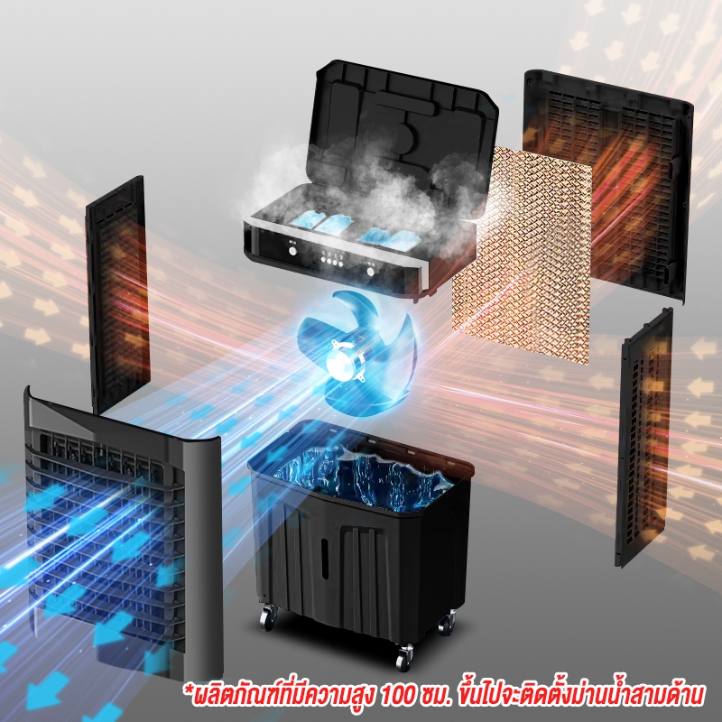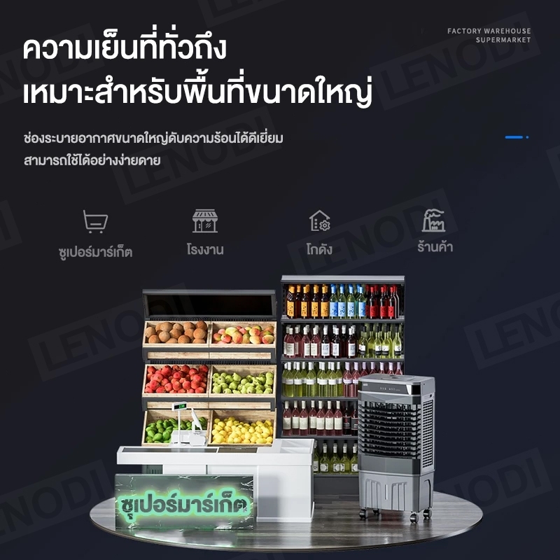 LENODI พัดลมทำความเย็นแบบถอดได้ ลมเย็นแรง 16000m³/h ความจุถังน้ำ75L 65L 48Lพลังแรงลมสูง AIR COOLER