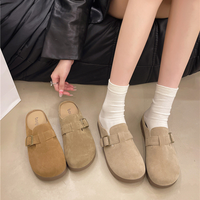 ผู้หญิงสบาย ๆ รองเท้าแตะสไตล์วินเทจใหม่สไตล์หนาแต่เพียงผู้เดียวสีทึบแบนรองเท้า จัดส่งจากประเทศไทย X108