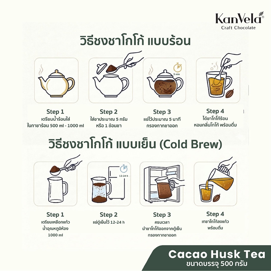 ชาจากเปลือกโกโก้ (ภายในไม่มีซองแยก) Chocolate tea 100% ไม่มีน้ำตาล ไม่มีคาเฟอีน ผ่อนคลาย ตรากานเวลา