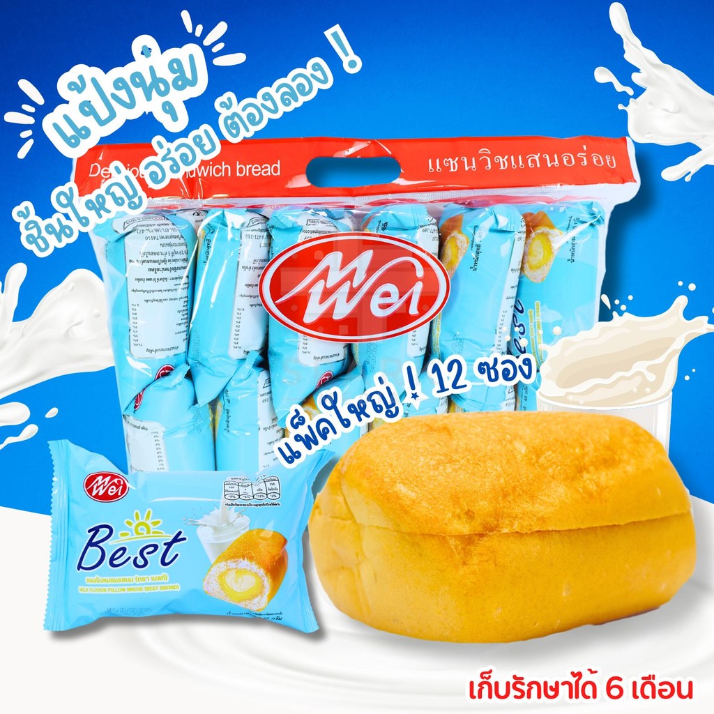 ขนมปังหมอนรสนม แบรนด์ MeiWei 1ลัง(12กล่อง |144ชิ้น)รสชาติหอมหวาน แป้งนุ่มชิ้นใหญ่ อร่อยทุกคำที่ทาน