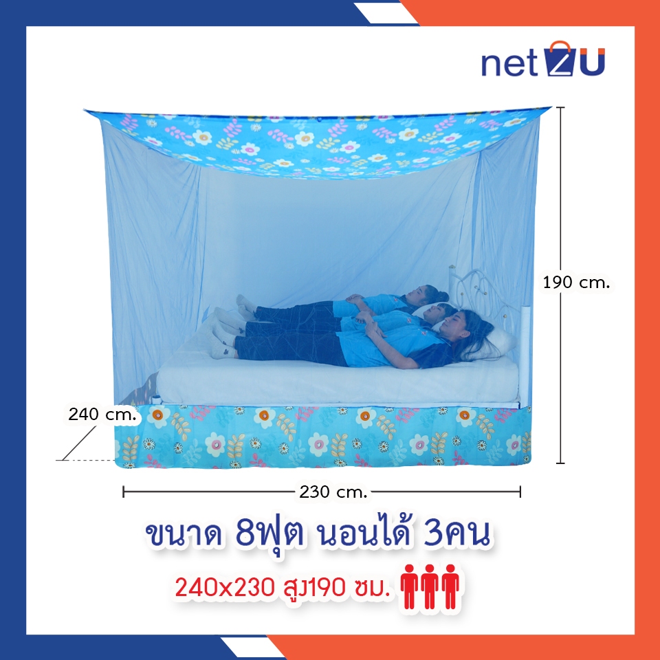 (ขายดี) Net2u มุ้งกันยุง มุ้ง 8ฟุต นอน3คน ต่อชายผ้าโพลี ยี่ห้อซากุระ Netto ต่อชายด้วยผ้าโพลี