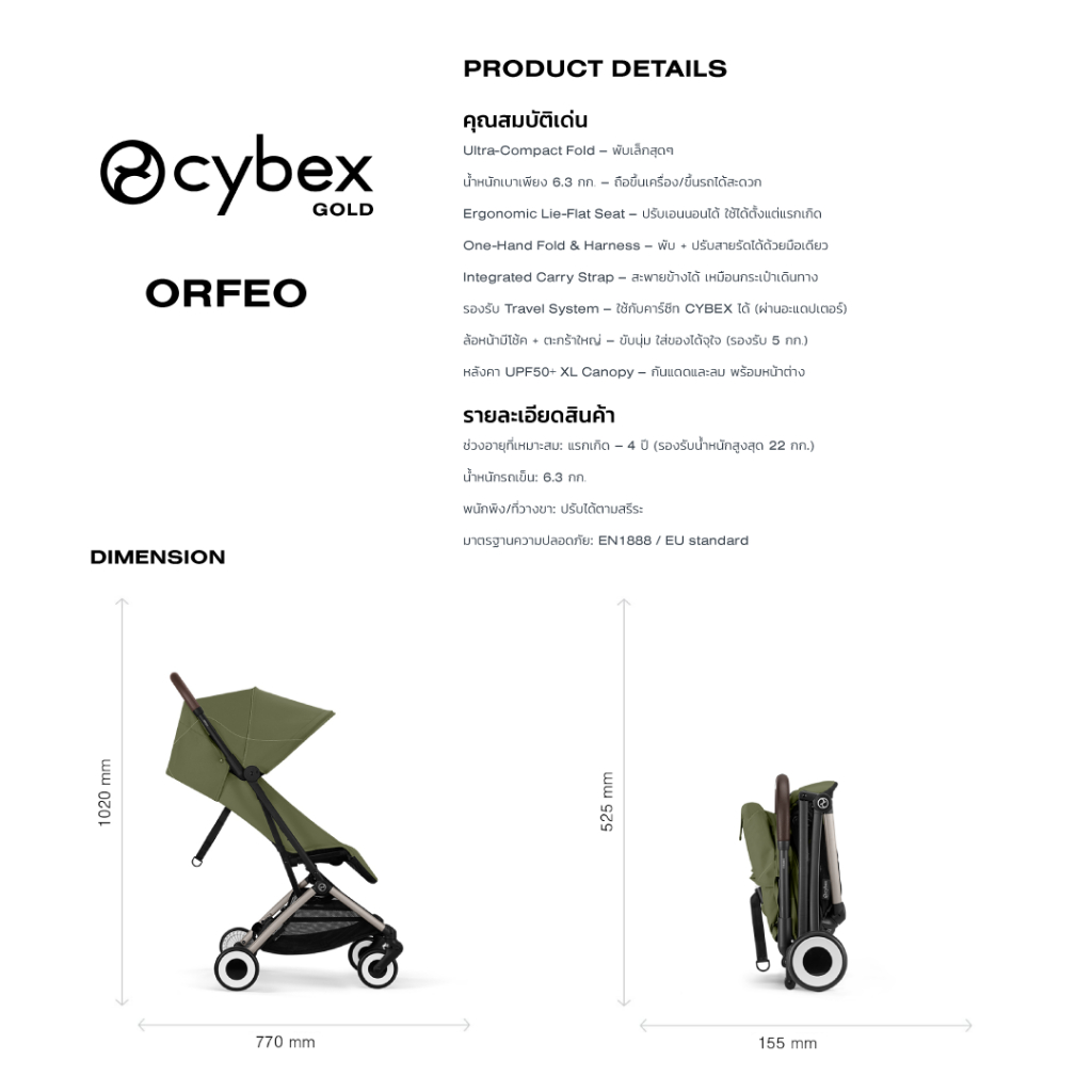 Cybex Orfeo 2025 | Carry On Travel Stroller 6.3กก | รถเข็นแรกเกิดพับเล็กขึ้นเครื่อง ปรับนอน 180