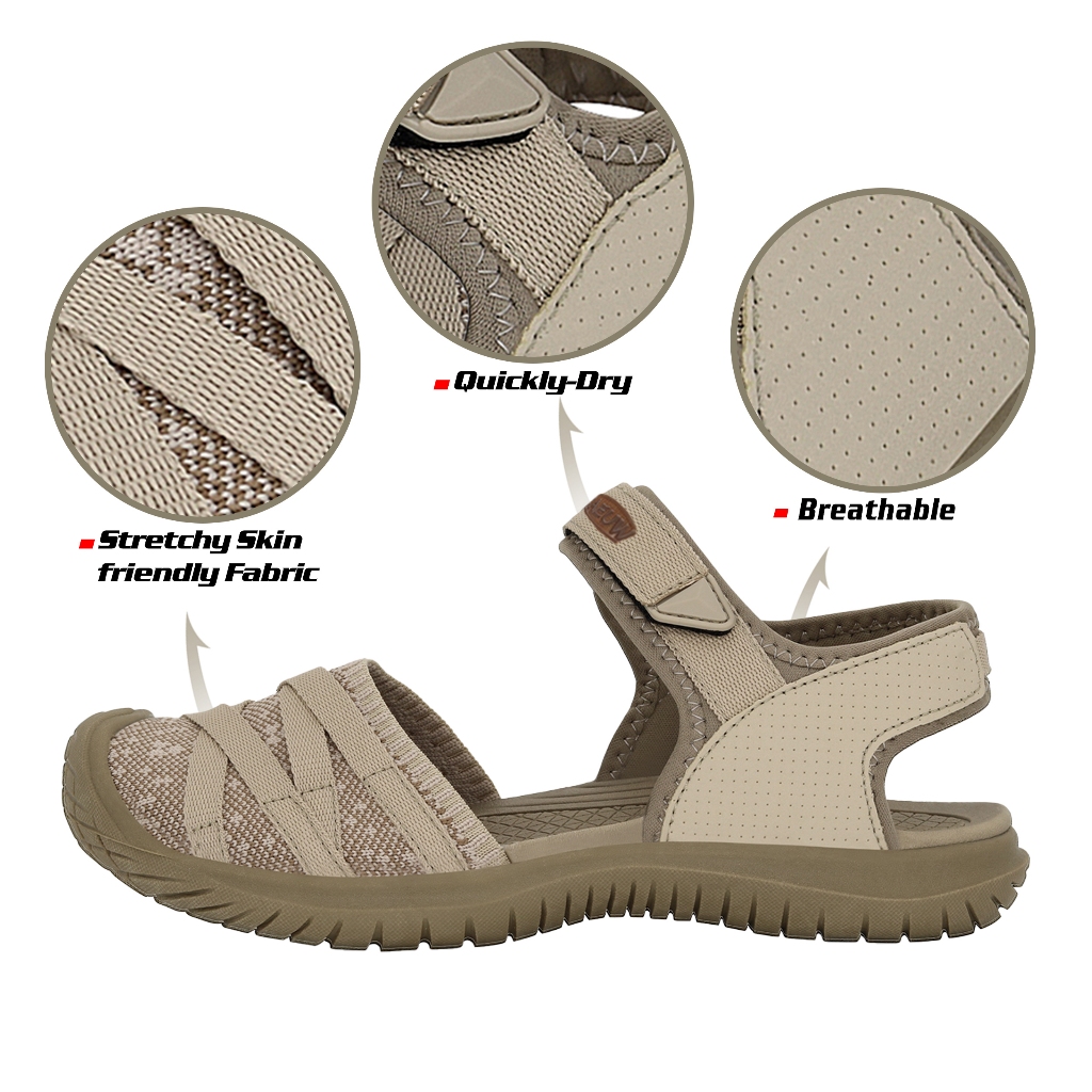CAEUW รองเท้าแตะสำหรับผู้หญิง แบบ Round Toe Flyknit นุ่มสบาย เหมาะสำหรับการเดินป่าและออกกำลังกาย