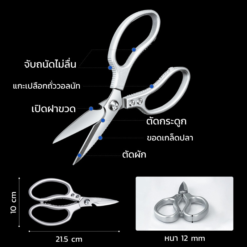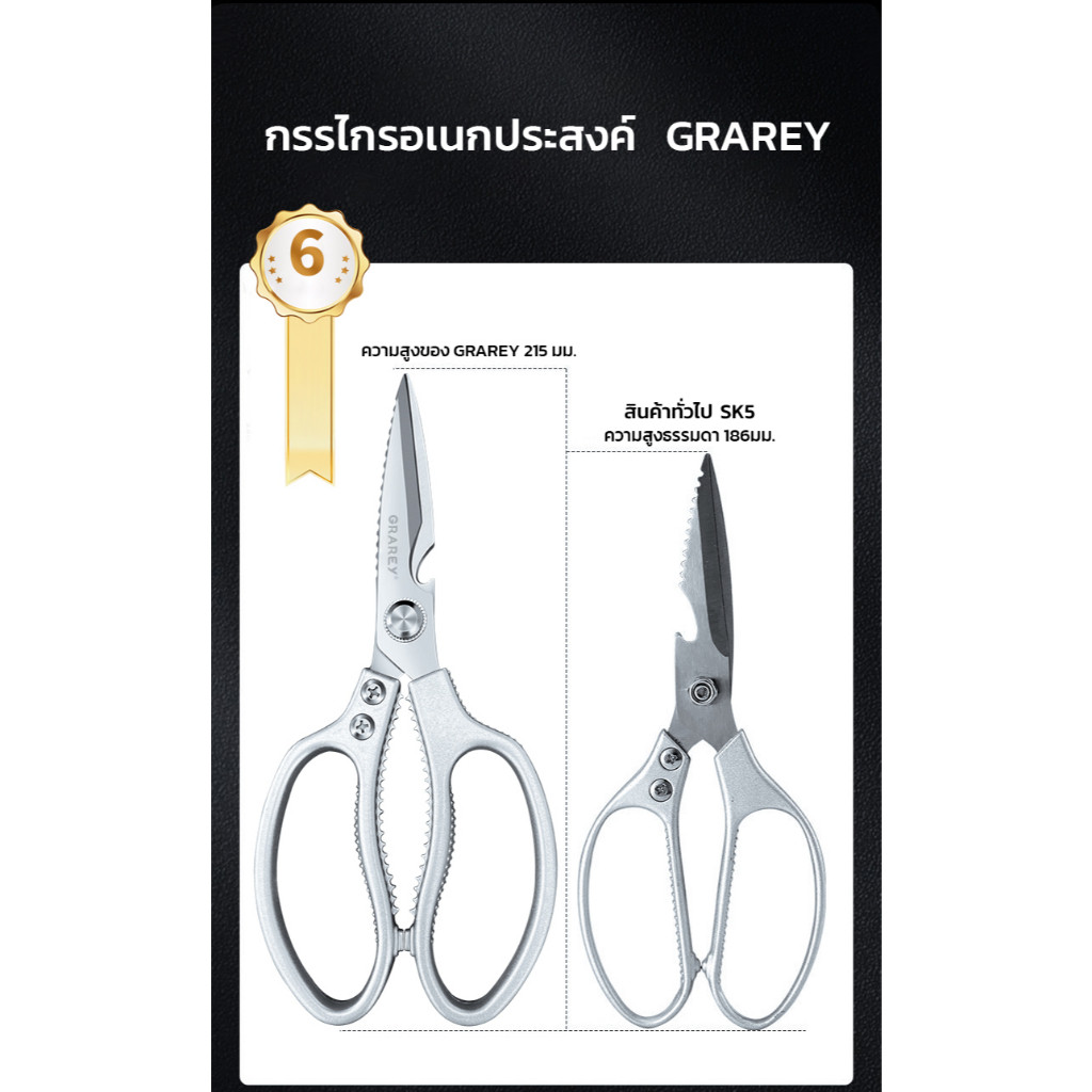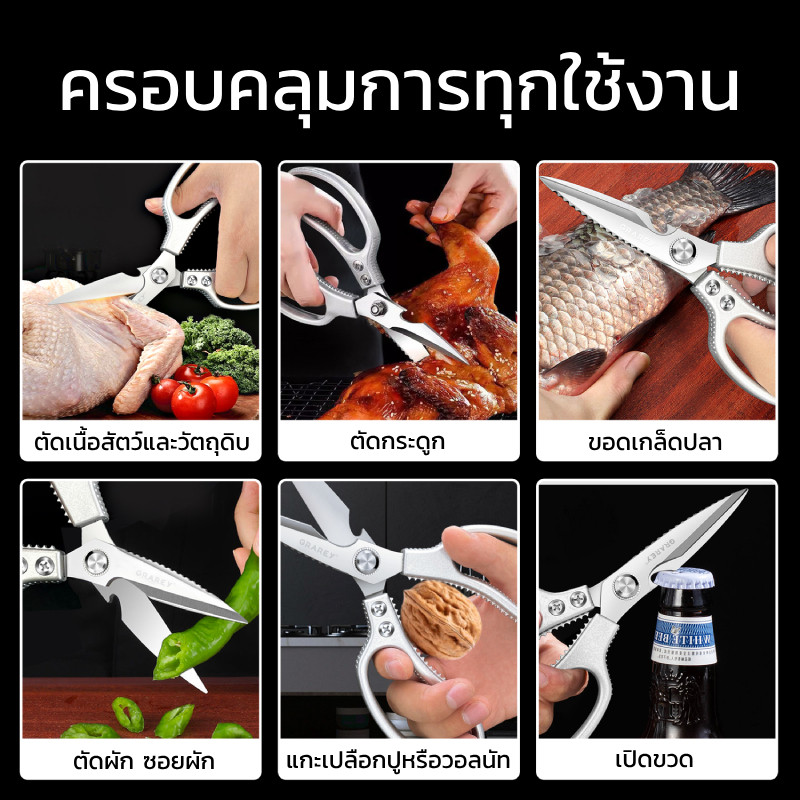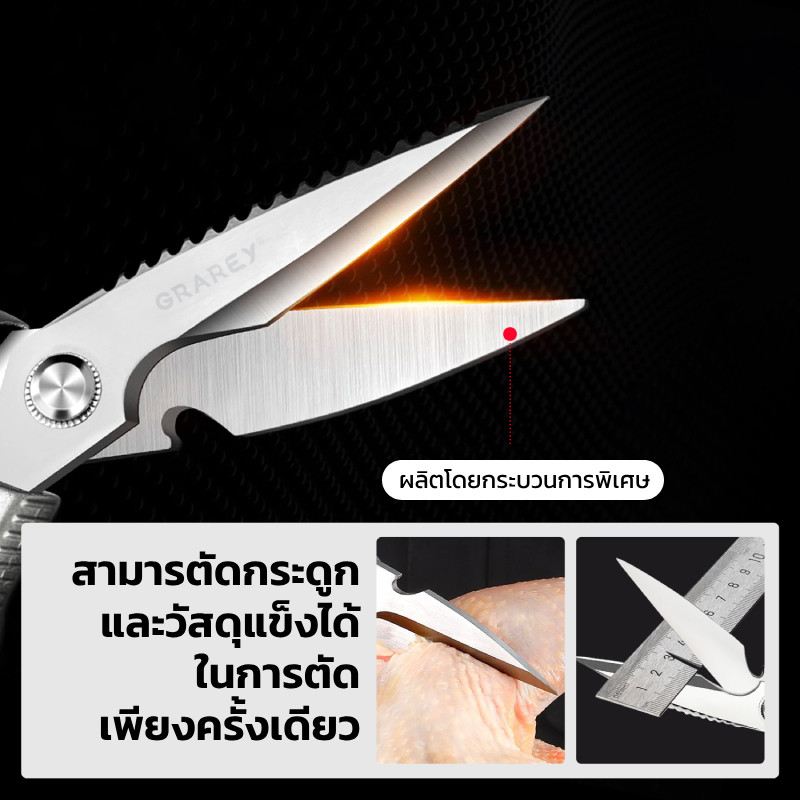 GRAREY กรรไกรครัวอเนกประสงค์ 4 in 1 เกรดพิเศษ คม แข็งแรงทนทาน