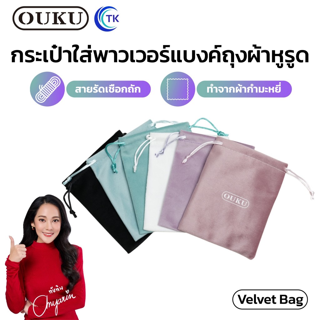 กระเป๋าหูรูดผ้ากำมะหยี่ OUKU VELVET BAG กระเป๋าพาวเวอร์แบงค์ สีสัน สําหรับเก็บใส่แบตสำรอง สายชาร์จ