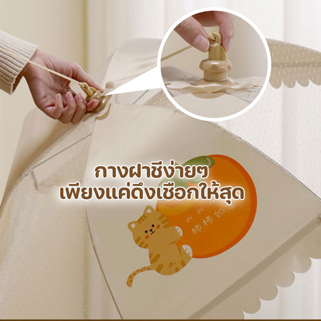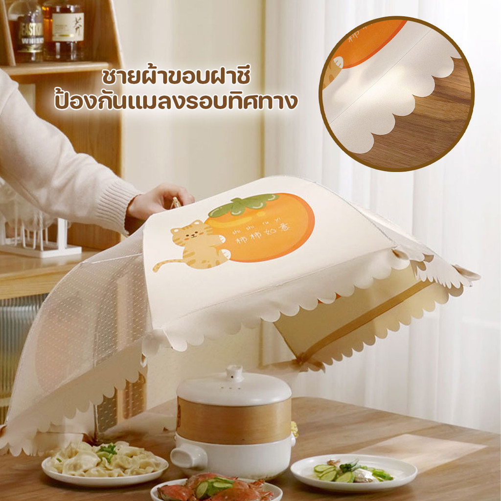 ฝาชีครอบอาหารแบบมุ้ง พับเก็บได้ มีสายห้อย ลวดลายสวยงาม ขนาด 80 cm.พร้อมส่งจากปทุม..