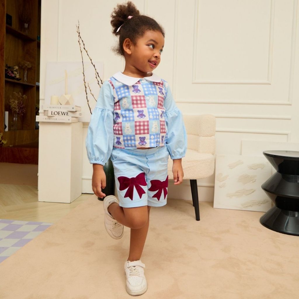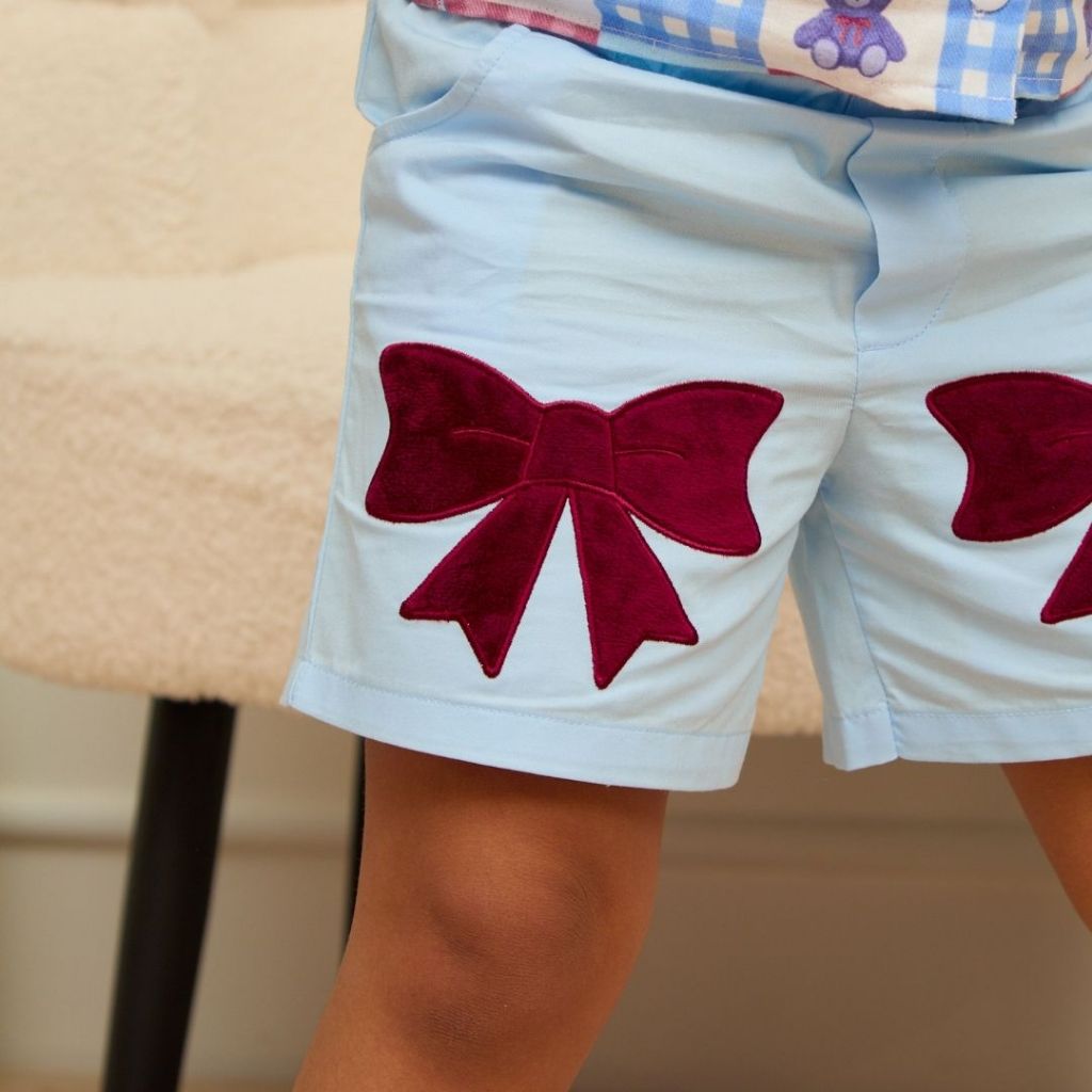 e'clat กางเกงขาสั้น เด็กผู้หญิง ขอบเอวยางยืด มีกระเป๋า แต่งผ้าปักลายโบว์ ผ้าcotton100% ผ้าไม่ยืด เนื้อนิ่ม8053