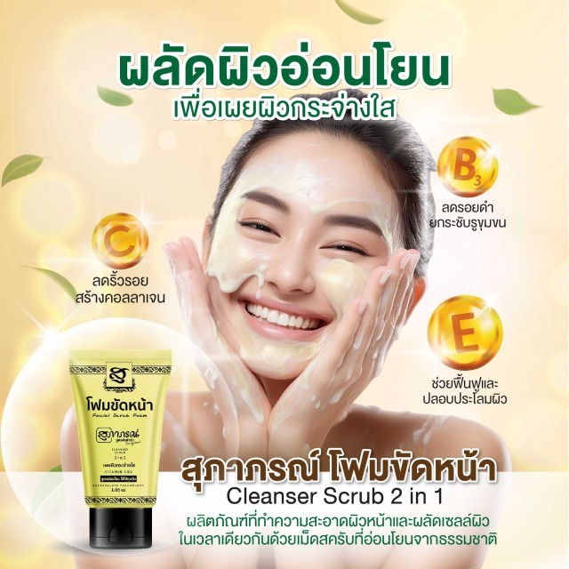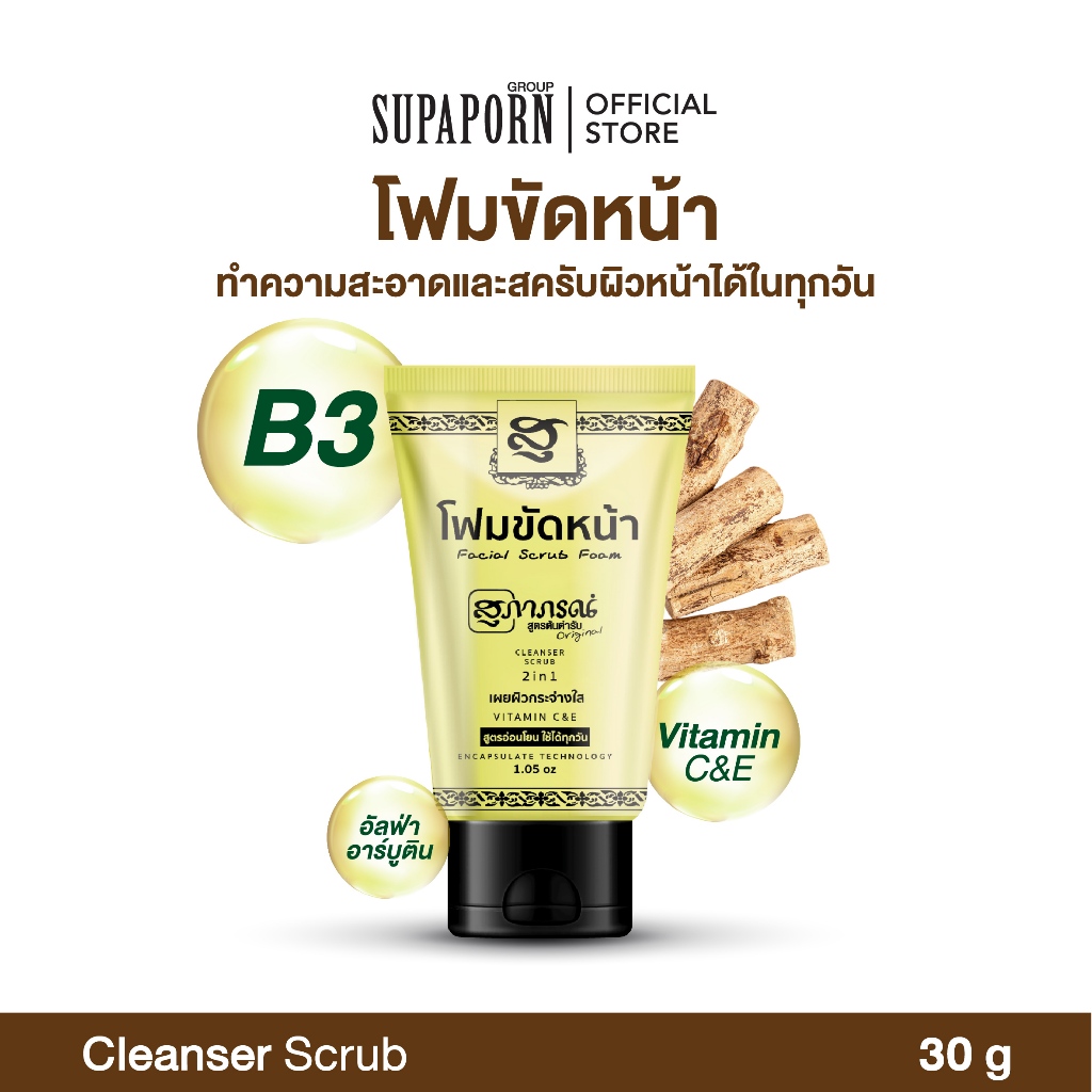 Supaporn Facial Scrub Foam 30g. สุภาภรณ์ โฟมสคับผิวหน้า สูตรอ่อนโยน /15950