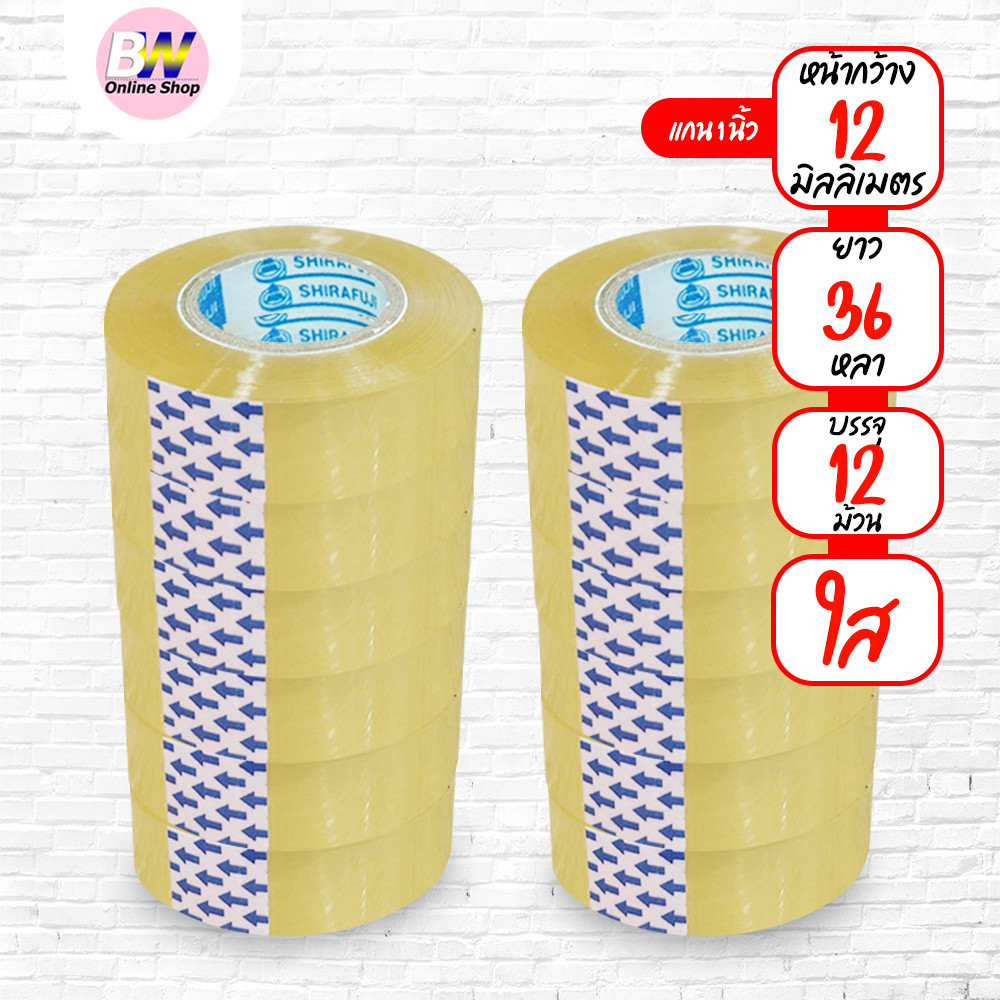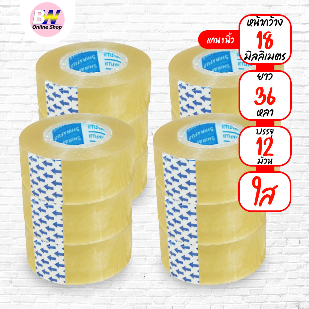 เทปใส กว้าง 12,18,24mm ยาว 36 หลา เเกน 1 นิ้ว (6 และ12 ม้วน)